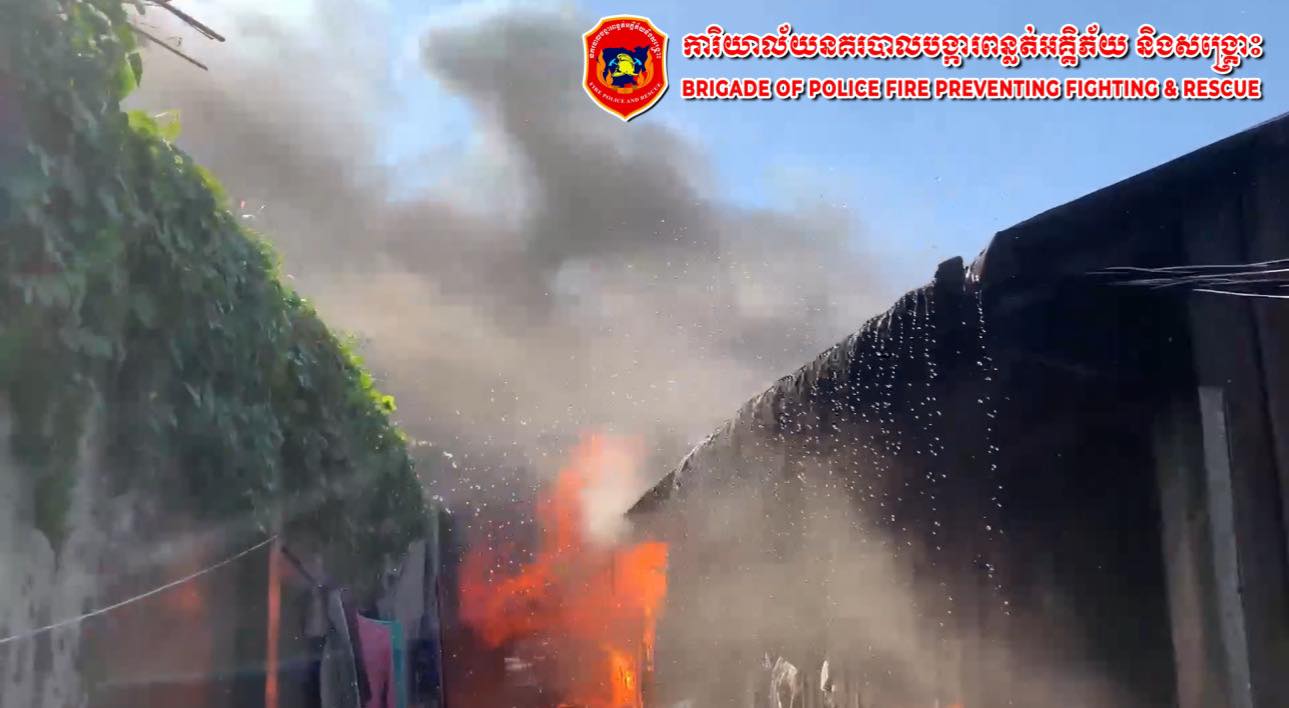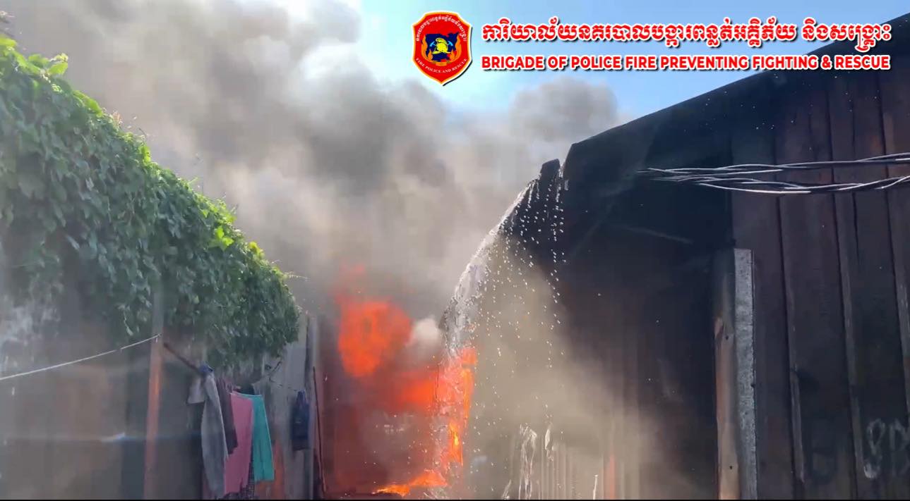 ឆ្លងចរន្តអគ្គិសនី បង្កជាអគ្គិភ័យឆាបឆេះផ្ទះមួយកន្លែង បណ្ដាលឱ្យខូចខាតបន្ទប់ជួល ៨បន្ទប់ទាំងស្រុង ស្ថិតនៅសង្កាត់គីឡូម៉ែត្រលេខ៦ ខណ្ឌឫស្សីកែវ