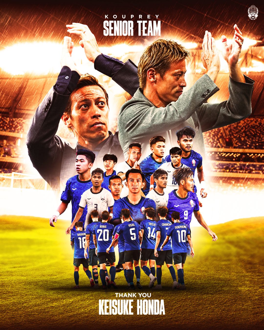 គ្រូបង្វឹកក្រុមជម្រើសជាតិបាល់ទាត់កម្ពុជាគឺលោក Keisuke Honda បាននិយាយថា៖ “ខ្ញុំសង្ឃឹមថាបានឃើញកម្ពុជាលេងនៅ World Cup មុនពេលដែលខ្ញុំបាត់បង់ជីវិត”។ ការថ្លែងដូចនេះត្រូវបានលោក Keisuke Honda ធ្វើឡើងនៅចំពោះមុខក្រុមគោព្រៃកម្ពុជា ហើយរូបលោកបាននិយាយពាក្យដ៏មានន័យនេះទាំងអួលដើមកទៀតផង។