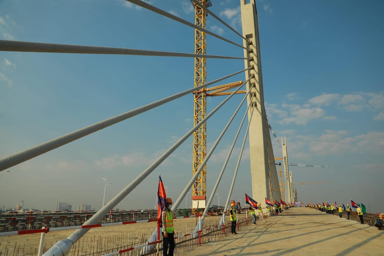 ស្ពានខ្សែកាបឫស្សីកែវឆ្លងកាត់ទន្លេសាប សាងសង់សម្រេចបាន ៩៣ភាគរយហើយ នៅដើមខែមេសាខាងមុខនឹងបញ្ចប់ទាំងស្រុង