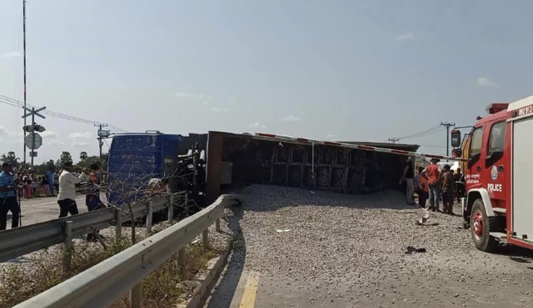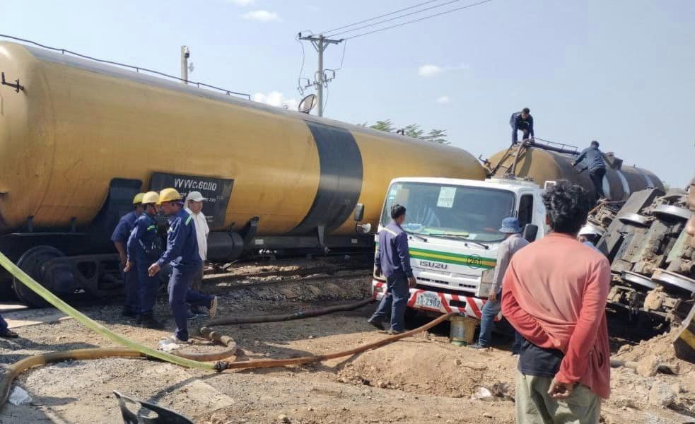 Update: គ្រោះថ្នាក់ចរាចរណ៍រវាងរថភ្លើងដឹកប្រេង ជាមួយឡានដឹកថ្ម នៅលើផ្លូវជាតិហាយវ៉េនោះ គឺមិនបណ្ដាលឱ្យមនុស្សរងគ្រោះថ្នាក់ធ្ងន់ធ្ងរទេ