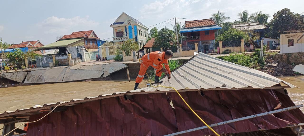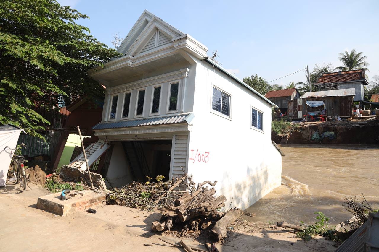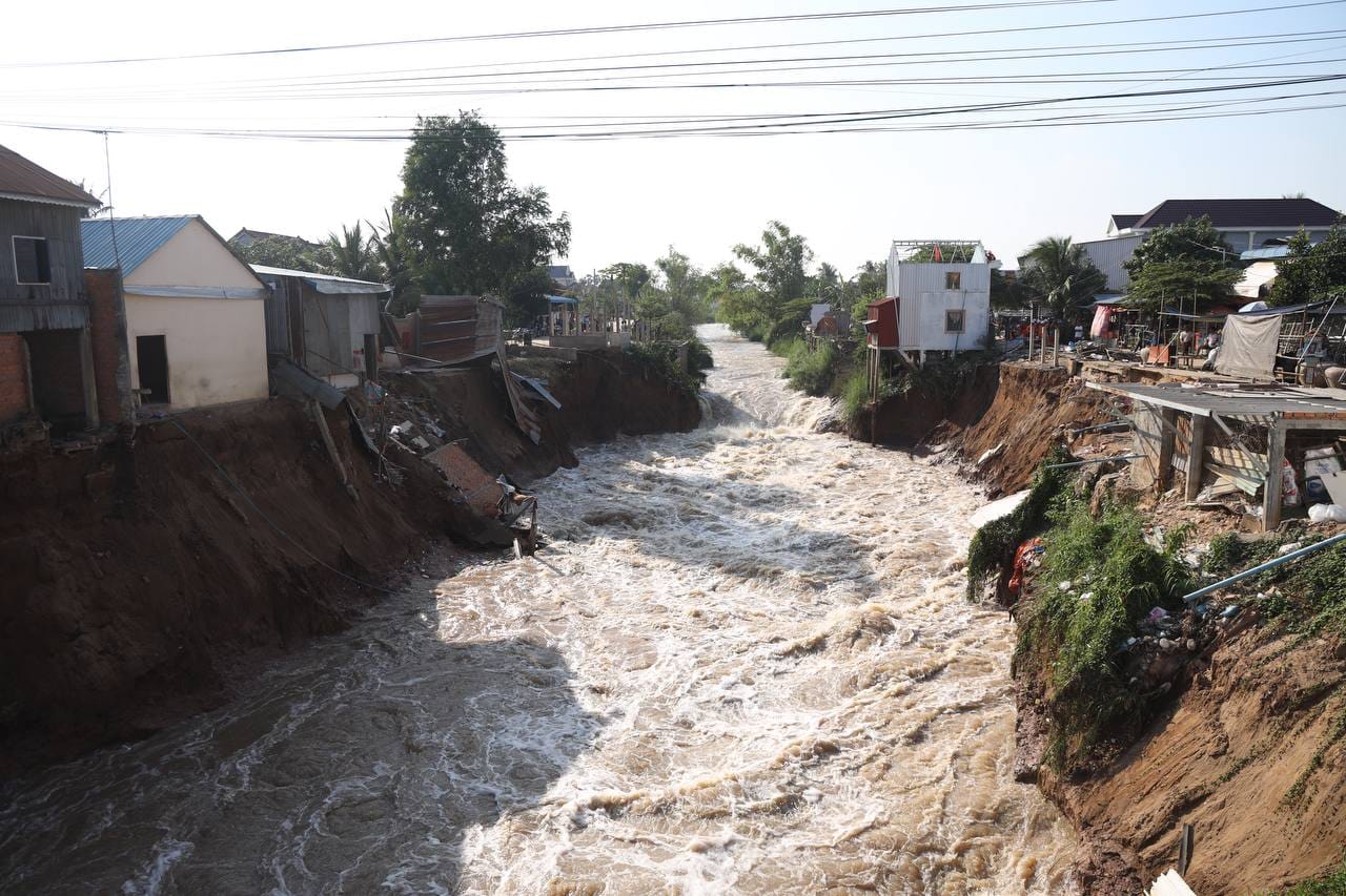 ឯកឧត្តមគន់ គីម ចុះពិនិត្យស្ថានភាពបាក់ច្រាំង ដោយសារទឹកជំនន់រដូវប្រាំង បង្កឲ្យផ្ទះសម្បែងប្រជាពលរដ្ឋមួយចំនួនស្រុតលិចចូលព្រែក
