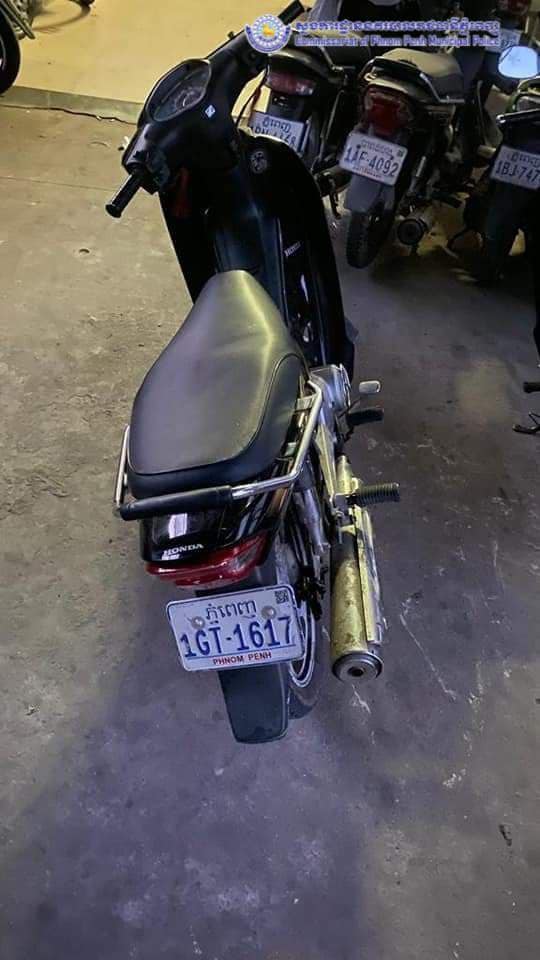 វត្ថុតាងដកហូត៖ ម៉ូតូម៉ាក Honda Dream c125 ពណ៌ខ្មៅ ពាក់ផ្លាកលេខ ភ្នំពេញ 1GI-1617 ជារបស់ឈ្មោះ តុង គីមតង ហៅ តង)។
