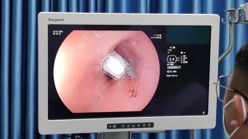 បុរសម្នាក់ខ្វះការប្រុងប្រយ័ត្នលេបថ្នាំទាំងសំបកចូលក្នុងបំពង់អាហារ ត្រូវបានក្រុមគ្រូពេទ្យជំនាញមន្ទីរពេទ្យមិត្តភាពខ្មែរ-សូវៀតសង្គ្រោះយកចេញភ្លាមៗ