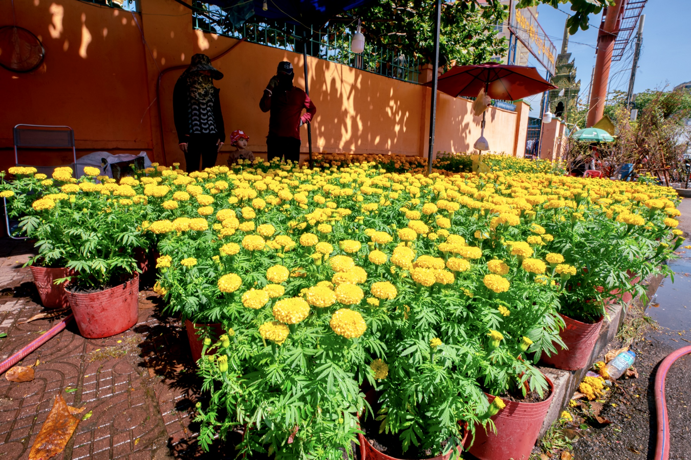 អ្នកស្រី អ៊ុល ស្រីរ័ត្ន អាជីវករលក់ដើមផ្កា នៅតាមបណ្តោយផ្លូវជាតិលេខ៦A ក្នុងមូលដ្ឋានខណ្ឌជ្រោយចង្វារ រាជធានីភ្នំពេញ បានថ្លែងប្រាប់ថា ផ្កាពិសេសៗ ភាគច្រើនជាប្រភេទផ្កានាំចូលពីក្រៅប្រទេសខ្លះ និងដាំដុះក្នុងប្រទេសខ្លះ ដើម្បីលក់ក្នុងឱកាសចូលឆ្នាំថ្មីប្រពៃណីចិន ដែលជាជំនឿតៗគ្នាចាត់ទុកថាជាការនាំសំណាងល្អក្នុងឆ្នាំថ្មី។ អ្នកស្រី បញ្ជាក់ថា ការយកផ្កាមកលក់ក្នុងរដូវកាលនេះ អ្នកស្រីបានត្រៀមរយៈពេល១ខែមុន ហើយគិតមកដល់ពេលនេះ ការលក់ផ្កាចេញក្នុងរង្វង់ប្រមាណ៥០ភាគរយប៉ុណ្ណោះ ដែលភាគច្រើនជាប្រភេទផ្កាតូចៗ។ អ្នកស្រីបន្ថែមថា សម្រាប់តម្លៃផ្កាគឺមានការឡើងថ្លៃសម្រាប់តែប្រភេទផ្កានិងរុក្ខជាតិដែលនាំចូលពីក្រៅប្រទេសប៉ុណ្ណោះ សម្រាប់ផ្កានិងរុក្ខជាតិដែលដាំដុះក្នុងប្រទេសនៅតែរក្សាតម្លៃថេរ ដដែល ៕