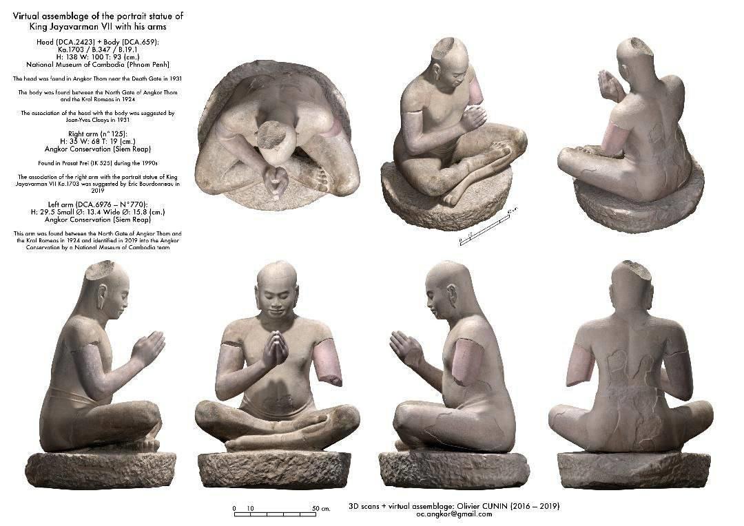 សម្មតិកម្មនេះ បានបញ្ជាក់ច្បាស់នាឆ្នាំ២០១៩ ពីក្រុមស្រាវជ្រាវបារាំងបានប្រើប្រាស់បច្ចេកវិទ្យា 3D ស្កេនសាកល្បងតភ្ជាប់។ ការតភ្ជាប់ដោយបច្ចេកវិទ្យានេះ បង្ហាញថាបំណែកដៃទាំងពីរពិតជារបស់ព្រះបាទជ័យវម៌្មទី៧ពិតប្រាកដមែន ព្រោះស្នាមតំណដែលបែកបាក់នោះត្រួតស៊ីគ្នាល្អស្ទើរ១០០%។ បន្ទាប់ពីមានការផ្សព្វផ្សាយលទ្ធផលនៃការសាកល្បងតភ្ជាប់ដោយបច្ចេកវិទ្យា 3D រួចមក ថ្នាក់ដឹកនាំសារមន្ទីរជាតិ បានសម្រេចស្នើសុំយកបំណែកព្រះហស្ដទាំងពីរនេះមករក្សាទុកនៅសារមន្ទីរក្នុងឆ្នាំ២០២១ ដើម្បីសាកល្បងតភ្ជាប់ជាមួយនឹងរូបរបស់ព្រះអង្គផ្ទាល់។