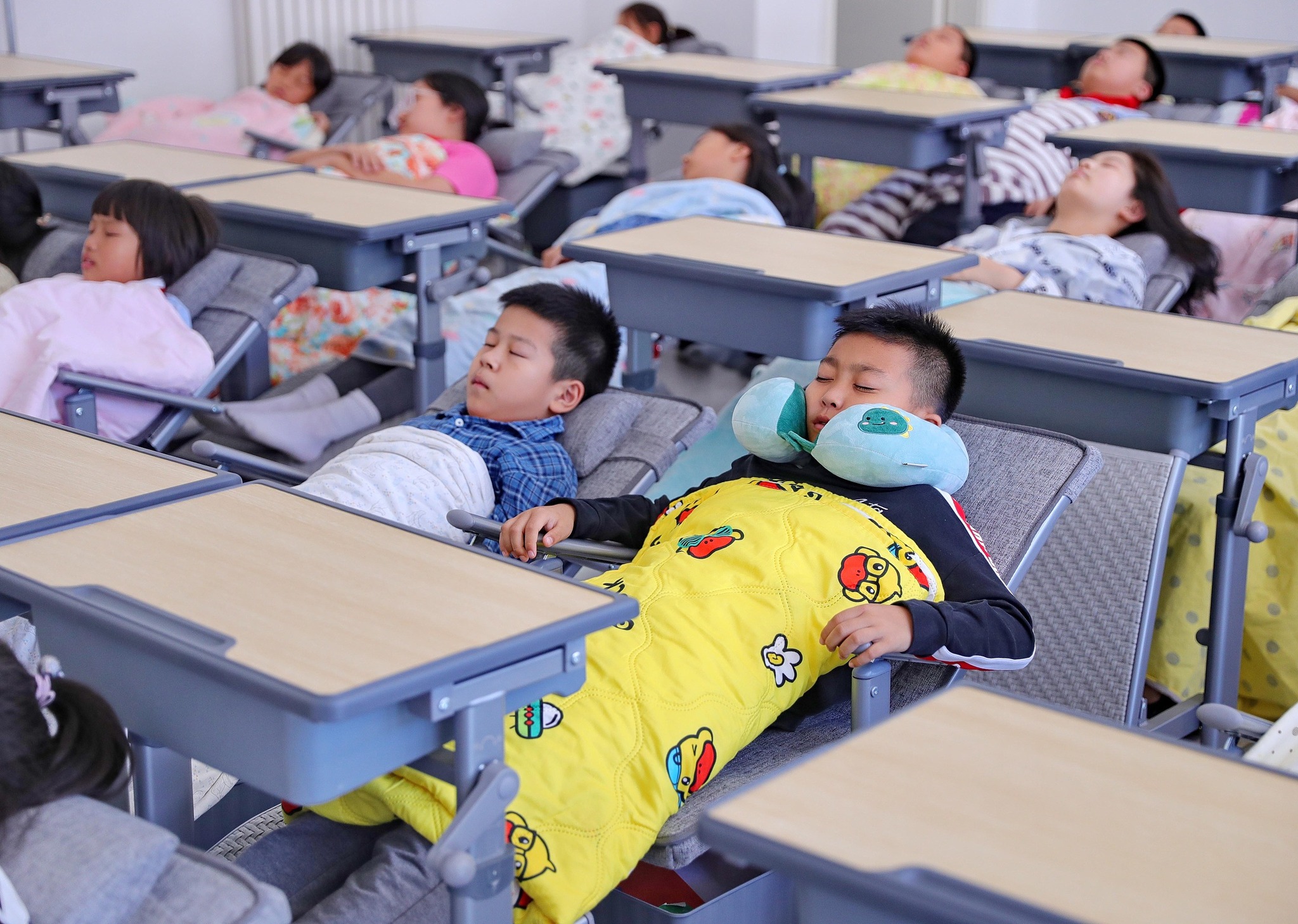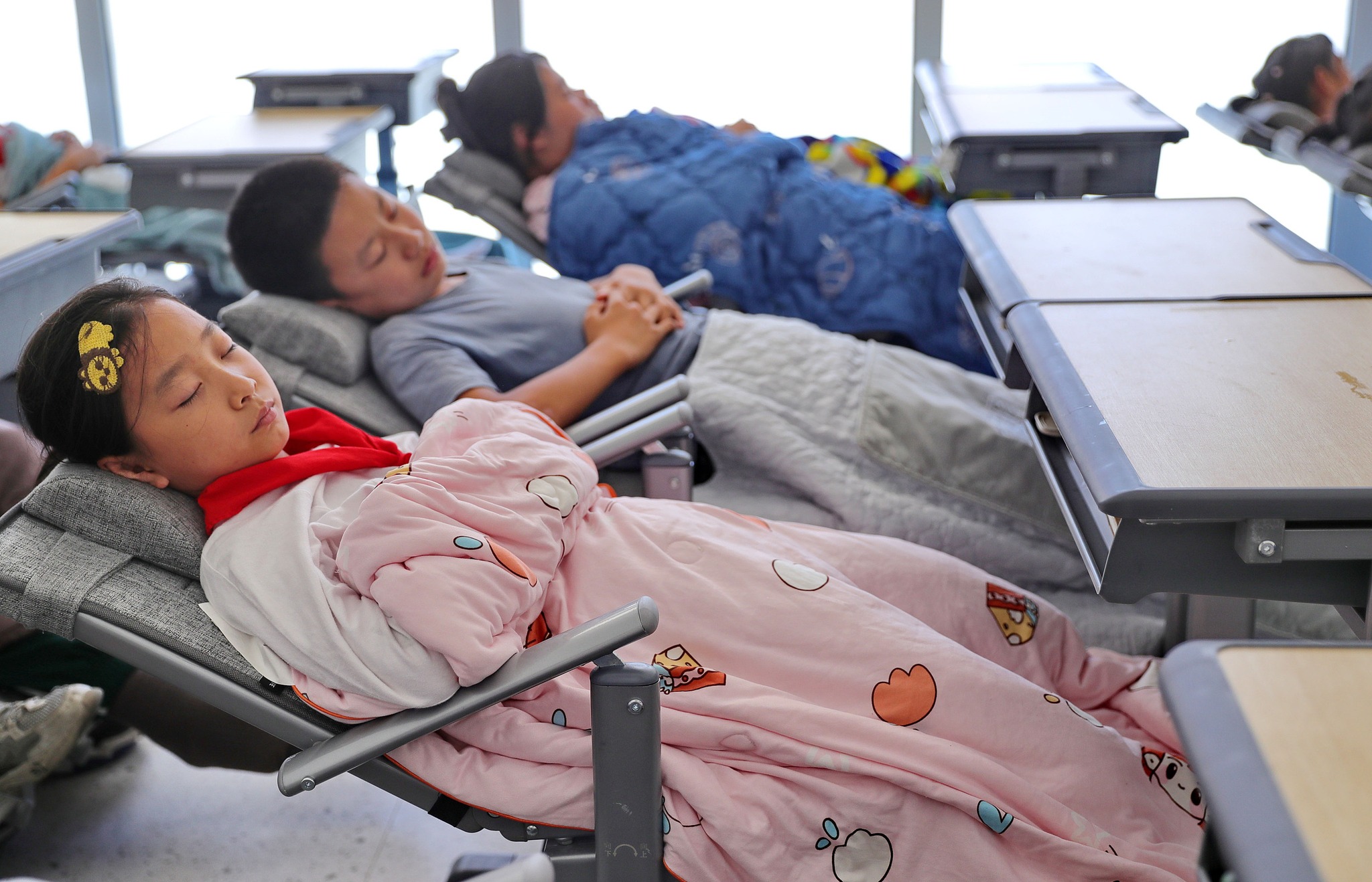 កុំឱ្យកូនសិស្សហត់នឿយខ្លាំងពេក សាលារៀនមួយចំនួននៅប្រទេសចិនបានរៀបចំឱ្យមានជាកៅអី ដែលអាចបត់គេងបានសម្រាប់កូនសិស្សសម្រាក