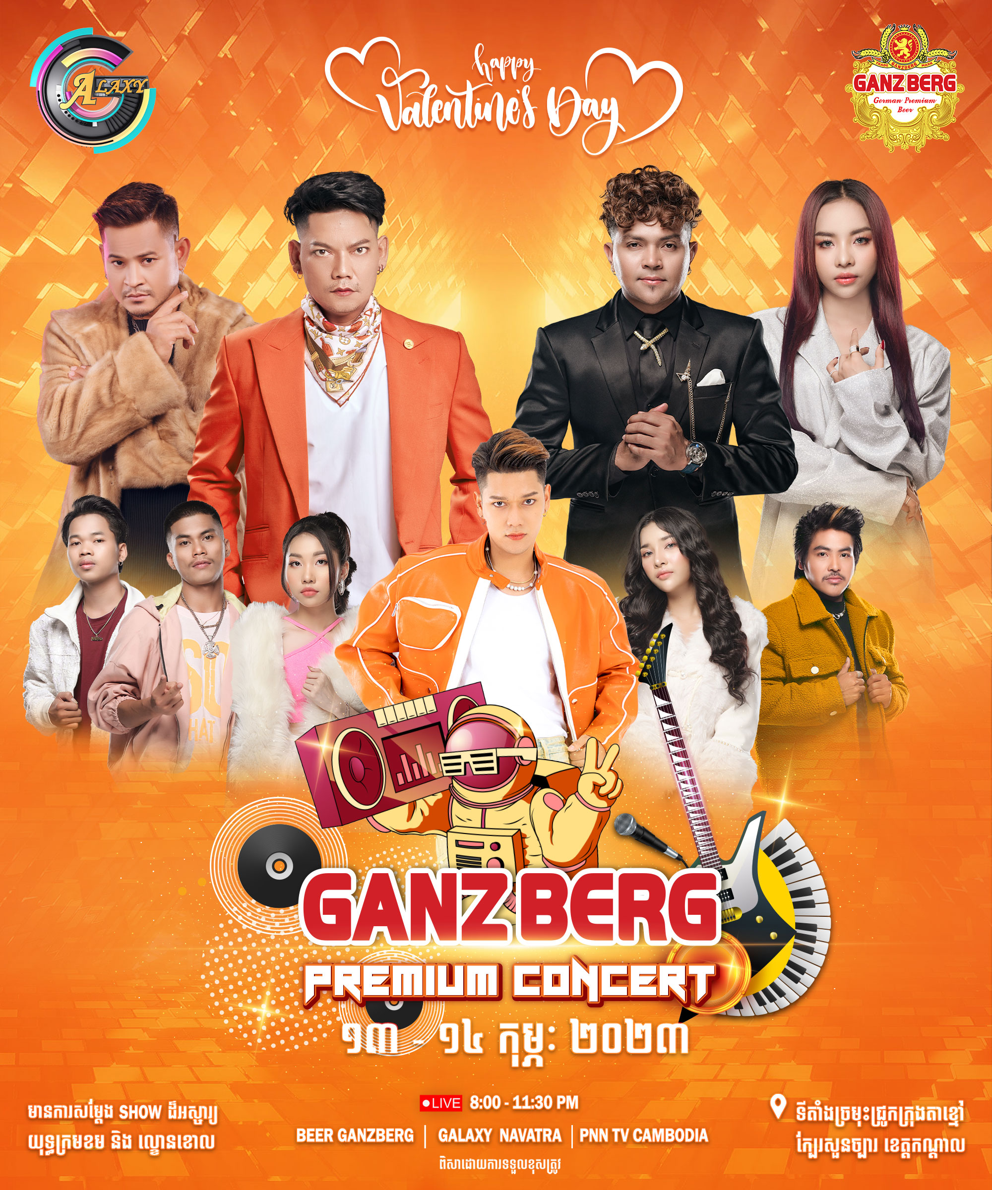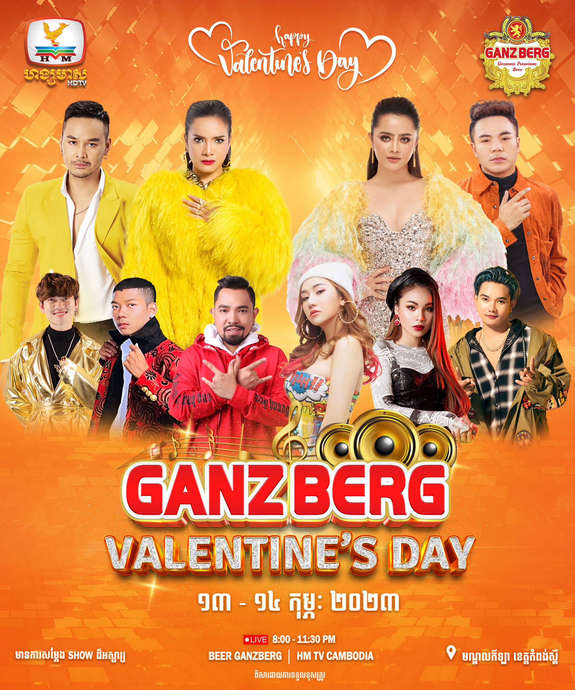 នា.!ទិវានៃក្តីស្រលាញ់ឆាប់់ៗខាងមុខនេះក្រុមហ៊ុនស្រាបៀរ GANZBERG នឹង ប្រារព្ធមហាព្រឹត្តិការណ៍ប្រគំតន្ត្រីដ៏អស្ចារ្យ ចំនួន 2ទីតាំង និង 2រាត្រីពេញ ផ្ទួនៗគ្នា នៅថ្ងៃទី 13-14 កុម្ភៈខាងមុខនេះ ក្នុងក្រុងតាខ្មៅ និង មណ្ឌលកីឡា ទីរួមខេត្តកំពង់ស្ពឺ។