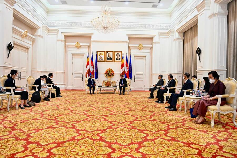 ឯកឧត្ដម អ៊ាង សុផល្លែត ជំនួយការផ្ទាល់សម្ដេចតេជោបានឱ្យដឹងដូច្នេះ បន្ទាប់ពី សម្ដេចអគ្គមហាសេនាបតីតេជោ ហ៊ុន សែន នាយករដ្ឋមន្ត្រីនៃព្រះរាជាណាចក្រកម្ពុជា បានអនុញ្ញាតឱ្យ ឯកឧត្តម UENO Atsushi ឯកអគ្គរាជទូតវិសមញ្ញ និងពេញសមត្ថភាពថ្មី របស់ប្រទេសជប៉ុនប្រចាំនៅព្រះរាជាណាចក្រកម្ពុជា ចូលជួបសម្ដែងការគួរសម នាព្រឹកថ្ងៃទី ០៨ ខែកុម្ភៈ ឆ្នាំ២០២៣ នៅវិមានសន្តិភាព។