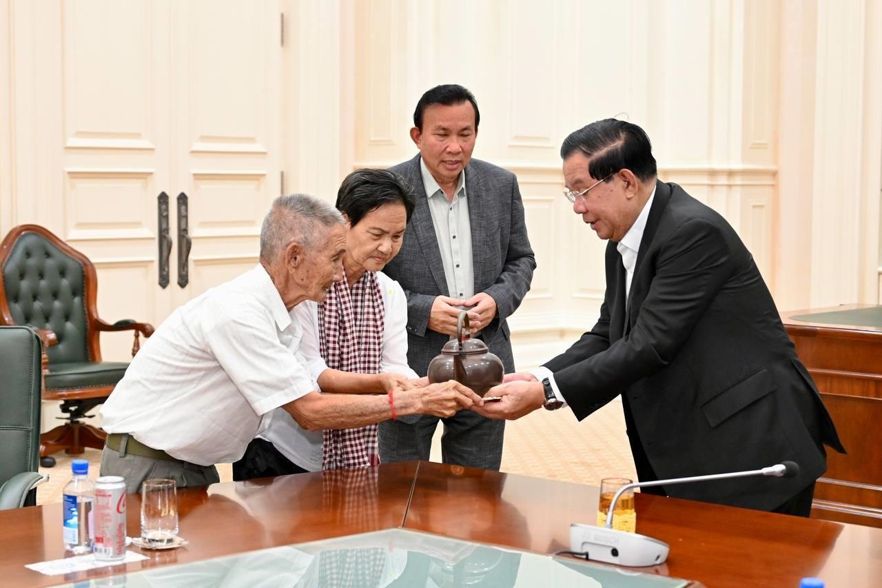 សម្តេចតេជោ បានស្វាគមន៍យ៉ាងកក់ក្តៅបំផុត ចំពោះលោកតា ទ្រី និងក្រុមគ្រួសារ ដែលបានយកវត្ថុបុរាណដ៏មានតម្លៃជូនសម្តេចទុកជាអនុស្សាវរីយ៍។ ក្នុងឱកាសនោះ លោកតាកុង ទ្រី អាយុ ៨២ឆ្នាំ រស់នៅសង្កាត់ចោមចៅ រាជធានីភ្នំពេញ បានបង្ហាញក្តីរំភើបរីករាយជាខ្លាំង បានជួបសម្តេចតេជោនាយករដ្ឋមន្ត្រី។ លោកតា បានបញ្ជាក់ថា ការប្រគល់ប៉ាន់តែ ដែលជាវត្ថុបុរាណដ៏មានតម្លៃ ជូនសម្តេចតេជោ គឺជាបំណងប្រាថ្នាដ៏ធំមួយសម្រាប់លោកតា។ ឥឡូវបំណងប្រាថ្នានេះ បានសម្រេចហើយ។