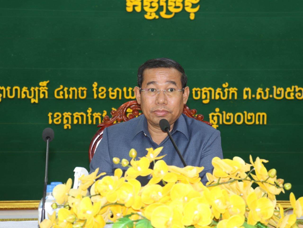 ក្នុងឱកាសនោះ ឯកឧត្តមអភិបាលខេត្តតាកែវ បានជម្រុញឱ្យ ស្នងការនគរបាលខេត្ត និងមេបញ្ជាការកងរាជអាវុធហត្ថខេត្ត រួមគ្នា ពង្រឹងលើការងារបង្ការ ទប់ស្កាត់ និងបង្ក្រាប លើការងារសន្តិសុខសណ្តាប់ធ្នាប់ ជាផ្នែកមួយដ៏មានសារសំខាន់ ក្នុងការអនុវត្តន៍គោលនយោបាយភូមិឃុំមានសុវត្ថិភាព ជាពិសេស គឺត្រូវបង្ក្រាបឱ្យខានតែបានចំពោះក្រុមក្មេងទំនើង ចោរលួច ចោរឆក់ គ្រឿងញៀន ដែលកំពុងកើតមានឡើងនៅតាមមូលដ្ឋាន។