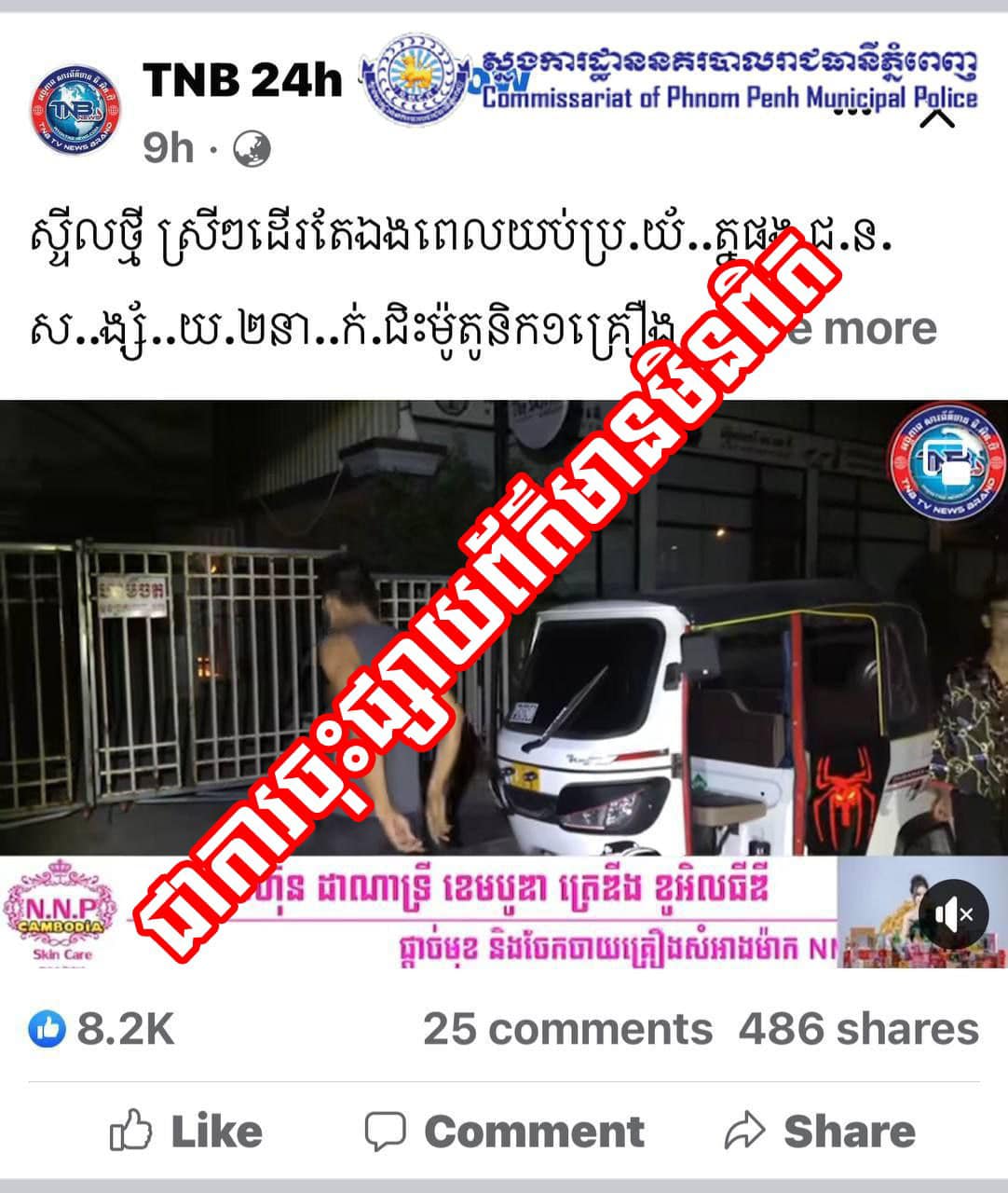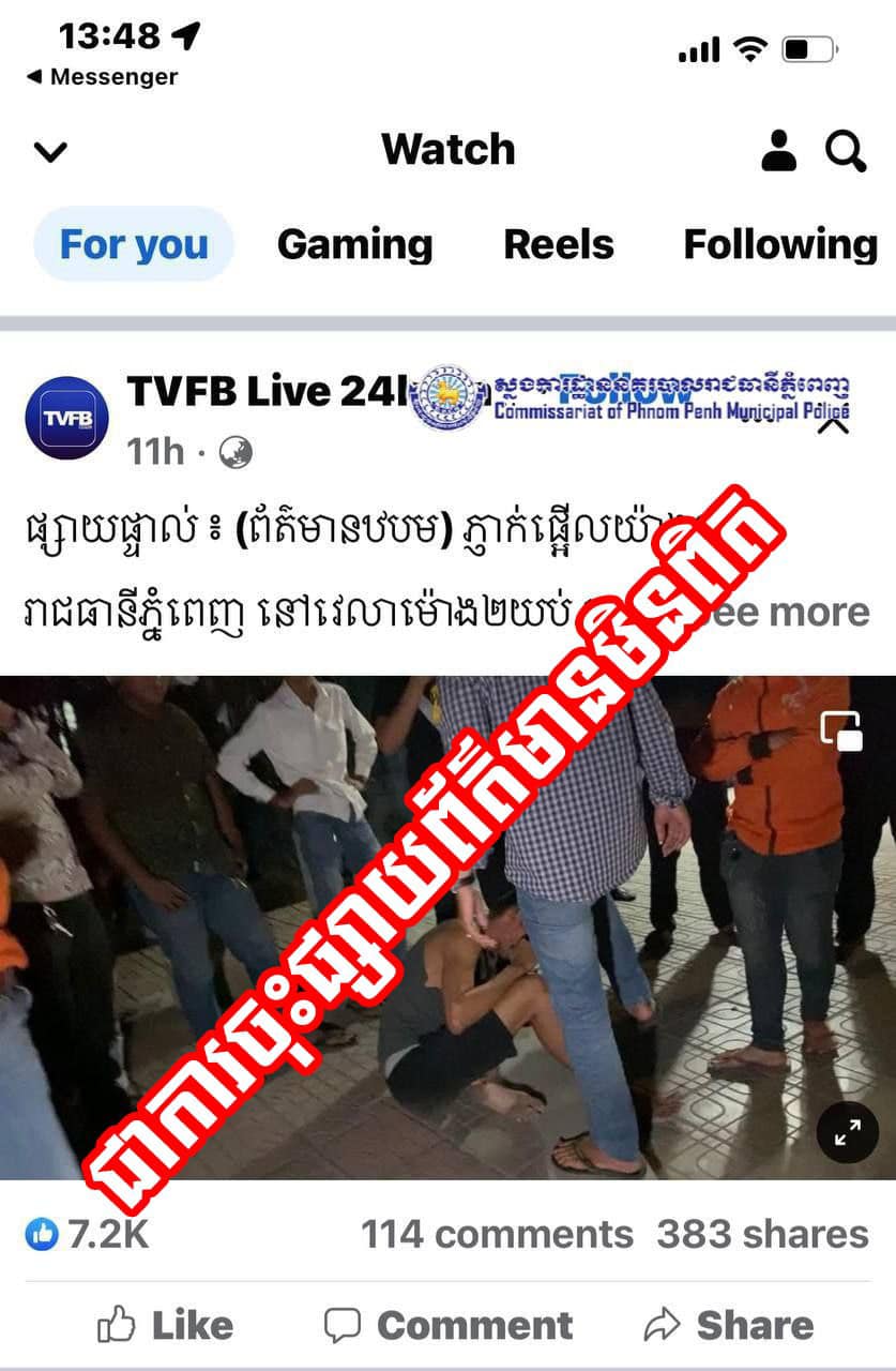 ស្នងការដ្ឋាននគរបាលរាជធានីភ្នំពេញ បំភ្លឺករណីឆក់នៅខណ្ឌដូនពេញ តាមពិតជារឿងទំនាស់រវាងសង្សារមួយគូឈ្លោះប្រកែកគ្នាមិនព្រមទៅដើរលេងជាមួយ