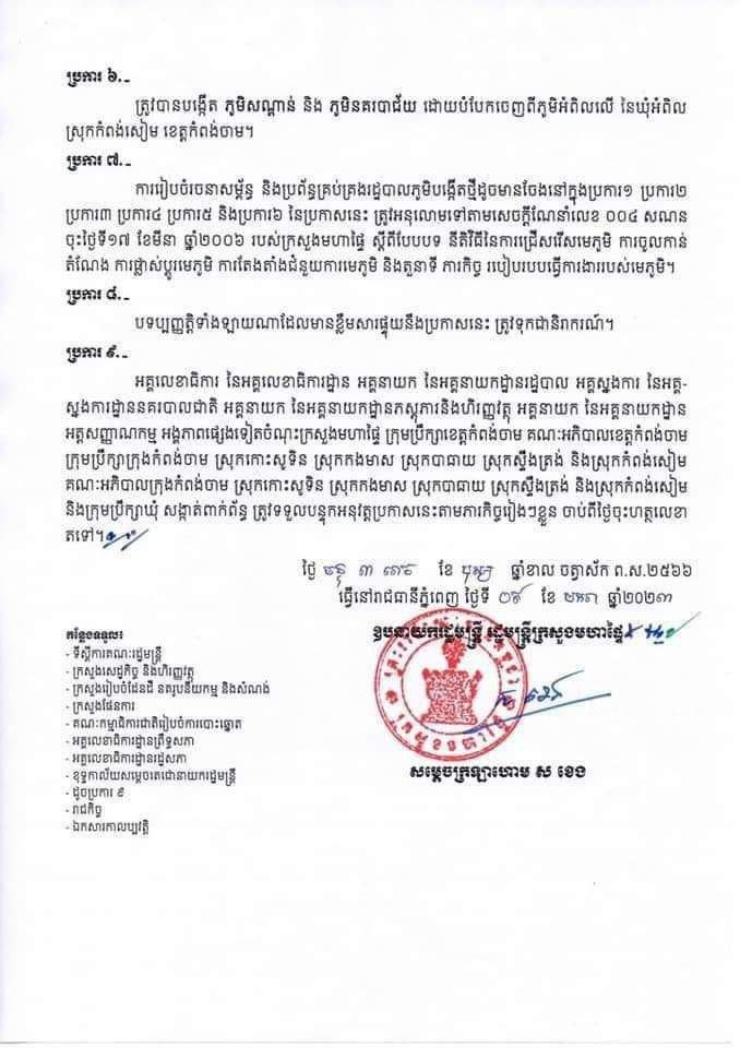 ក្រសួងមហាផ្ទៃ សម្រេចបង្កើត និងបំបែកភូមិ ក្នុងខេត្តកំពង់ចាម