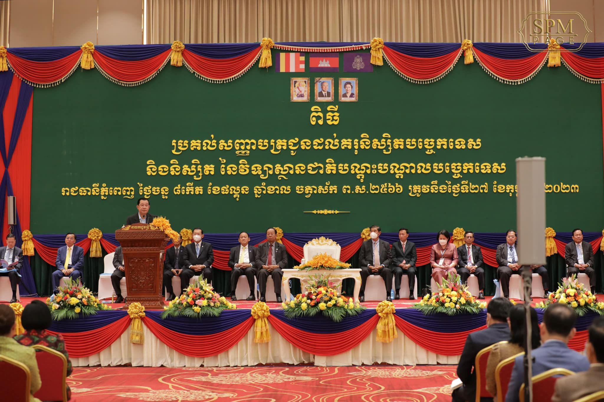 ក្នុងពិធី ប្រគល់សញ្ញាបត្រជូនដល់គរុនិស្សិតបច្ចេកទេស និងនិស្សិតនៃវិទ្យាស្ថានជាតិបណ្តុះបណ្តាលបច្ចេកទេស ជាង ៥ ០០០ នាក់ នៅមជ្ឈមណ្ឌលសន្និបាត និងពិព័រណ៍ជ្រោយចង្វារ នាព្រឹក ថ្ងៃទី២៧ ខែកុម្ភៈ ឆ្នាំ២០២៣ សម្តេចតេជោ ហ៊ុន សែន បានមានប្រសាសន៍ អបអរសាទរចំពោះដល់ក្រុមកីឡាបាល់ទះក្រោម ១៩ឆ្នាំ របស់កម្ពុជាដែលបានប្រកួតឈ្នះ បារាំង និងកោតសរសើរក្រុមកីឡាបាល់ទះក្រោម១៩ឆ្នាំរបស់កម្ពុជា ដែលមានបច្ចេកទេសលេងបានល្អឈ្នះក្រុមកីឡាបាល់ទះរបស់បារាំង។ សម្តេចតេជោ បានថ្លែងថា «ក្រុមរបស់កម្ពុជាដែលលេងជាមួយក្រុមបារាំងនោះ គឺកម្ពុជាមិនអន់ទេ សូម្បីកម្ពស់ក៏ប្រហាក់ប្រហែលនឹងជនជាតិបារាំងដែលជាដៃគូប្រកួតនោះដែរ»។ សម្តេចតេជោ បានផ្តល់អនុសាសន៍ថា ការប្រកួតកីឡា ឬជាអ្នកកីឡាក៉ំចង់ធ្វើតួឯកលេងតែឯង ត្រូវចេះចែកបាល់ ឬតួនាទីរបស់ខ្លួនច្បាស់លាស់ក៉ំចង់ធ្វើតែខ្សែប្រយុទ្ធ។ គួរបញ្ជាក់ដែរថា ក្រុមកីឡាបាល់ទះដែលមានវ័យក្រោម១៩ឆ្នាំរបស់កម្ពុជាទទួលបានជ័យជម្នះ ក្នុងការប្រកួតកីឡាបាល់ទះមិត្តភាពអន្តរជាតិកម្ពុជា-បារាំង (យុវជនអាយុក្រោម ១៩ឆ្នាំ U19) ដែលបានប្រកួតនៅពហុកីឡដ្ឋានជាតិអូឡាំពិកកាលពីថ្មីៗនេះ។ ក្នុងពីធីនេះដែរ សម្តេចតេជោនាយករដ្ឋមន្ត្រី ក៏បានរម្លឹកពីអតីកាល នៃការបណ្តុះបណ្តាលជំនាញបច្ចេកទេសនៅកម្ពុជា ដែលពេលនោះ គឺមានការលំបាកយ៉ាងខ្លាំង ដោយសម្តេចតេជោបានដឹកនាំការធ្វើកំណែទម្រង់ចាប់ពីឆ្នាំ១៩៨៥មក រហូតដល់មានលទ្ធផលល្អប្រសើរមកទល់ពេលបច្ចុប្បន្ននេះ។