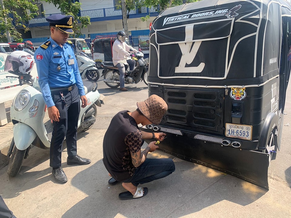 កម្លាំងអធិការដ្ឋានក្រុងតាខ្មៅ ឃាត់ម៉ូតូកង់បីមួយគ្រឿង កែច្នៃបំពាក់អំពូលភ្លើងនិងស៊ីផ្លេខុសបច្ចេកទេស យកមកអប់រំ និងធ្វើកិច្ចសន្យា