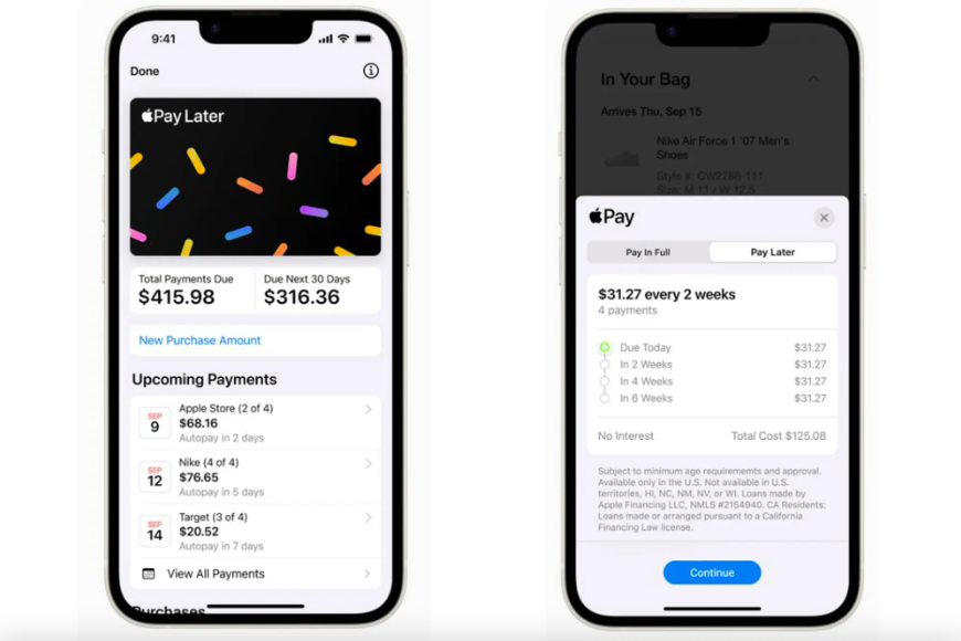 Apple កាលពីថ្ងៃអង្គារ បានបើកដំណើរការសេវាកម្ម ទិញពេលនេះ-បង់ប្រាក់ពេលក្រោយ (BNPL) នៅសហរដ្ឋអាមេរិក ដែលនឹងអនុញ្ញាតឱ្យអតិថិជនអាចបង់ប្រាក់សម្រាប់ការទិញតាមក្រោយបាន។ ក្រុមហ៊ុនបាននិយាយថា សេវាកម្ម Apple Pay Later នឹងអនុញ្ញាតឱ្យអតិថិជនបែងចែកការទិញជា ៤ចំណែក ក្នុងរយៈពេល ៦សប្តាហ៍ ដោយមិនមានការប្រាក់ ឬថ្លៃសេវាឡើយ។ អ្នកប្រើប្រាស់ក៏អាចស្នើសុំប្រាក់កម្ចីពី ៥០ ទៅ ១,០០០ ដុល្លារ សម្រាប់ការទិញតាមអ៊ីនធឺណិត និងក្នុងកម្មវិធីតាមរយៈ iPhone និង iPad ជាមួយពាណិជ្ជករដែលទទួល Apple Pay ដែលសព្វថ្ងៃអ្នកលក់រាយនៅសហរដ្ឋអាមេរិកប្រមាណ ៨៥% បានទទួលយកកម្មវិធីទូទាត់នេះ។