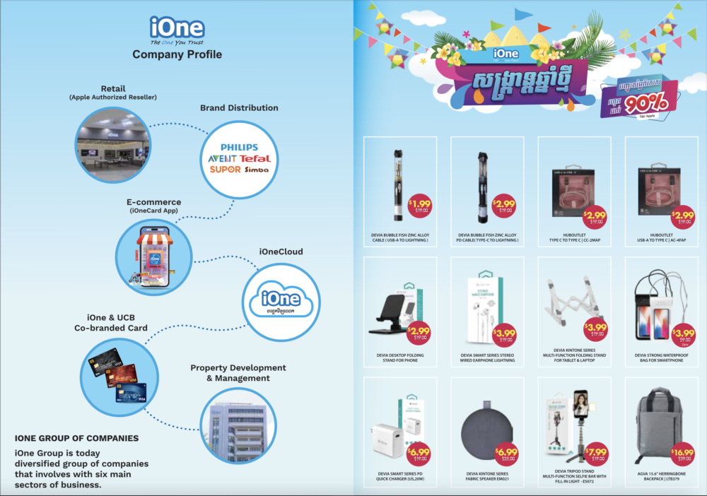 ដើម្បីអបអរសាទរ ពិធីបុណ្យចូលឆ្នាំខ្មែរប្រពៃណីជាតិខាងមុខនេះ iOne មានកិត្តិយសក្នុងការចូលរួមពិពណ៏សង្រ្កាន្តឆ្នាំថ្មិជាមួយ សាកលវិទ្យាល័យជាតិគ្រប់គ្រង ផងដែរ។ ក្នុងស្តង់ពិពណ៏ផ្ទាល់ អតិថិជនអាចធ្វើការជាវនូវផលិតផលជាច្រើន ដូចជា សម្ភារៈផ្ទះបាយ ម៉ាក Philips, Tefal, Supor, សម្ភារៈសំរាប់មាតា និង ទារក ម៉ាក Avent និង Simba, សម្ភារៈបរិក្ខារ ទូរស័ព្ទដៃ និង កុំព្យូទ័រ ជាច្រើន តាមរយៈ កម្មវិធីទូរស័ព្ទ iOneCard App ដែលការផ្តល់ជូននេះ មានបញ្ចុះតម្លៃរហូតដល់ 90%។ ក្រៅពីការលក់បញ្ចុះតម្លៃ អតិថិជន ក៏អាចមានឪកាស ឈ្នះរង្វាន់ពីការលេង Game និងទទួលបានកាដូជាច្រើន សំរាប់ការដោនឡូត កម្មវិធីទូរស័ព្ទ iOneCard នៅស្តង់ iOne ផ្ទាល់។