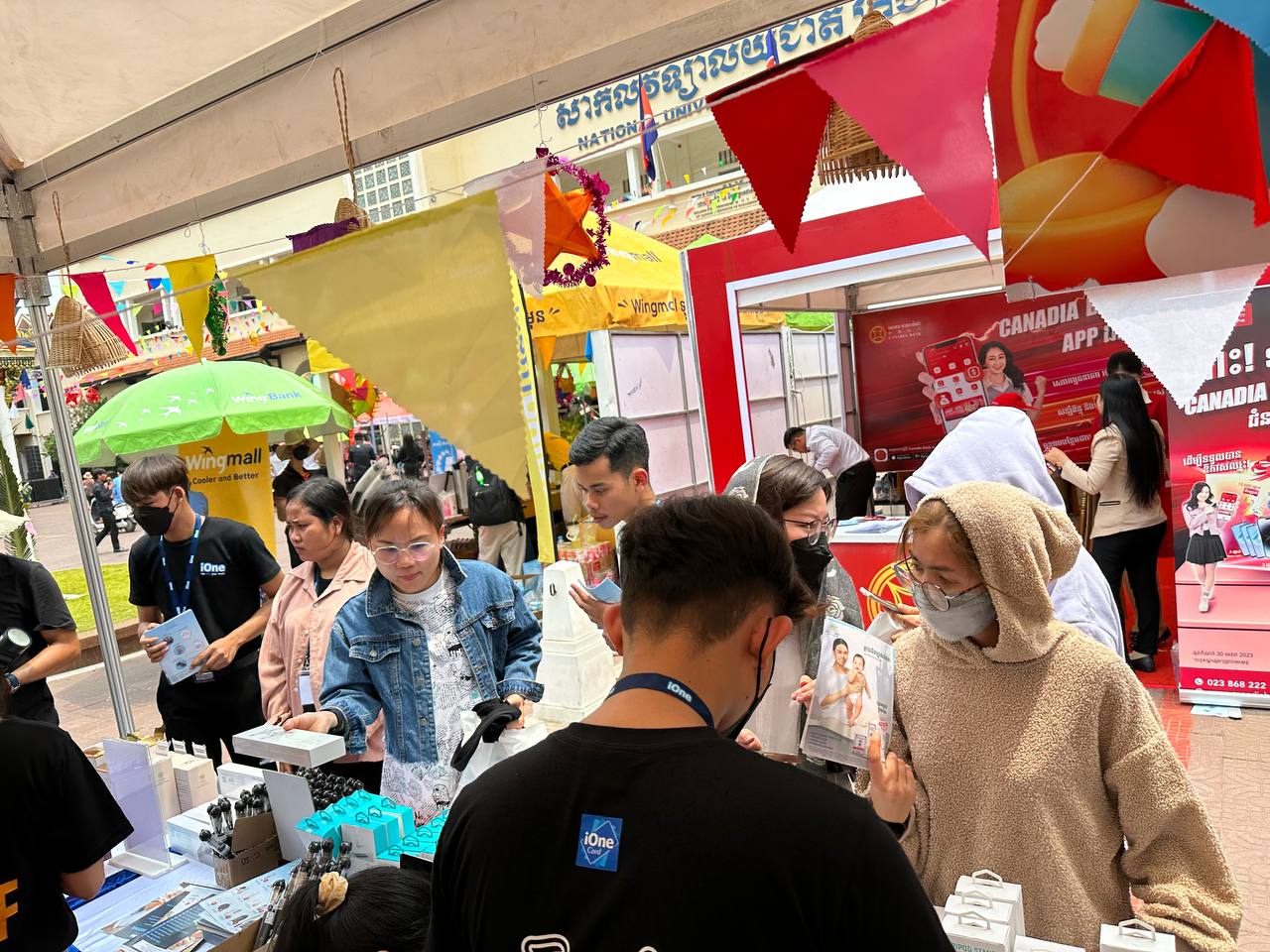 អបអរសាទរសង្រ្កាន្តឆ្នាំថ្មី នៅ សាកលវិទ្យាល័យជាតិគ្រប់គ្រង ពីស្តង់ iOne