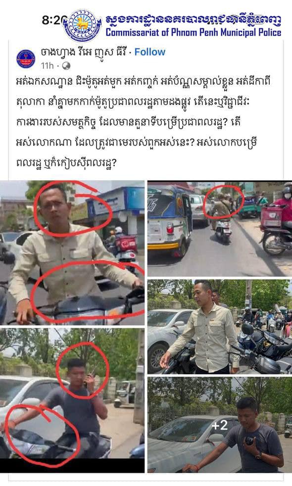 ស្នងការរាជធានីភ្នំពេញ បំភ្លឺចំពោះការផ្សាយព័ត៌មានមិនពិត «ករណីសមត្ថកិច្ចអត់ឯកសណ្ឋាន ជិះម៉ូតូអត់មួកសុវត្ថិភាព អត់បណ្ណសម្គាល់ខ្លួនមកកាក់ម៉ូតូប្រជាពលរដ្ឋតាមដងផ្លូវ»