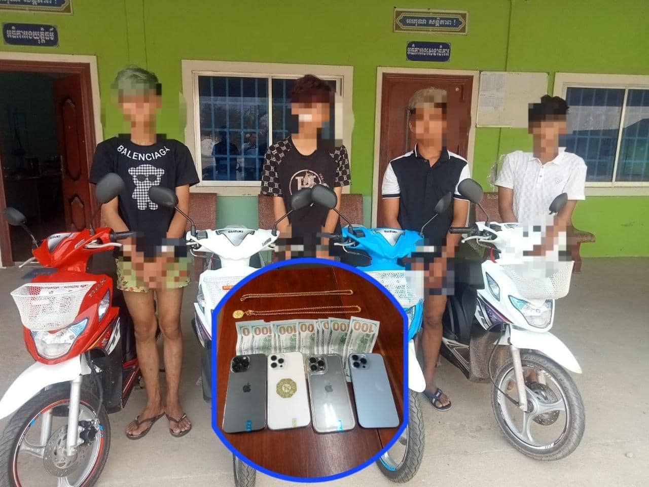 ១.ឈ្មោះមូល ពិសិដ្ឋ ហៅពេជ្រ ភេទប្រុសអាយុ ១៦ឆ្នាំ នៅភូមិដំណាក់កន្ទួត ឃុំដំណាក់កន្ទួតខាងត្បូង ស្រុកកំពង់ត្រាច ខេត្តកំពត ដែលត្រូវជាចៅបង្កើតជនរងគ្រោះជាអ្នកធ្វើសកម្មភាពលួច។ ដកហូតវត្ថុតាង ម៉ូតូម៉ាកនិចផលិតឆ្នាំ២០២៣ គ្មានផ្លាកលេខ១គ្រឿង ទូរស័ព្ទអាយហ្វូន១៣ប្រូ១គ្រឿង ខ្សែក២ខ្សែរ និងប្រាក់ដុល្លារចំនួន១ម៉ឺនដុល្លារ។