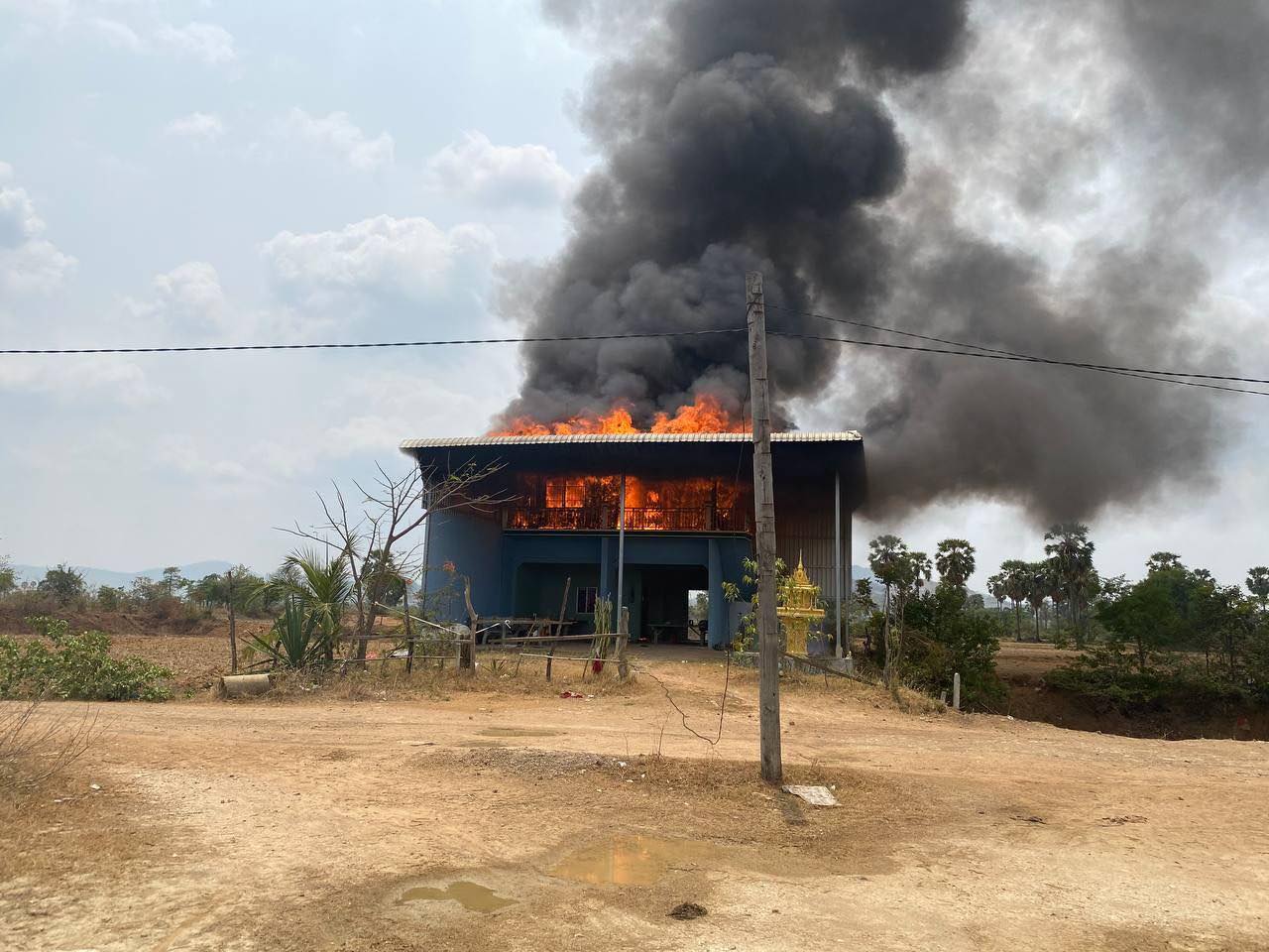 ហួសចិត្ត! ខឹងម្ដាយមិនបំពេញតាមបំណងទិញម៉ូតូឱ្យខ្លួនមុនបុណ្យចូលឆ្នាំថ្មី ក៏ដុតផ្ទះម្ដាយឆេះអស់គ្មានសល់ ស្ថិតនៅស្រុកគងពិសី ខេត្តកំពង់ស្ពឺ