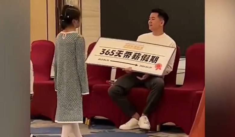 បុគ្គលិកកំពូលសំណាងម្នាក់បានឈ្នះរង្វាន់ «ឈប់សម្រាក ៣៦៥ថ្ងៃ» នៅក្នុងកម្មវិធីជប់លៀងប្រចាំឆ្នាំរបស់ក្រុមហ៊ុនមួយនៅប្រទេសចិន
