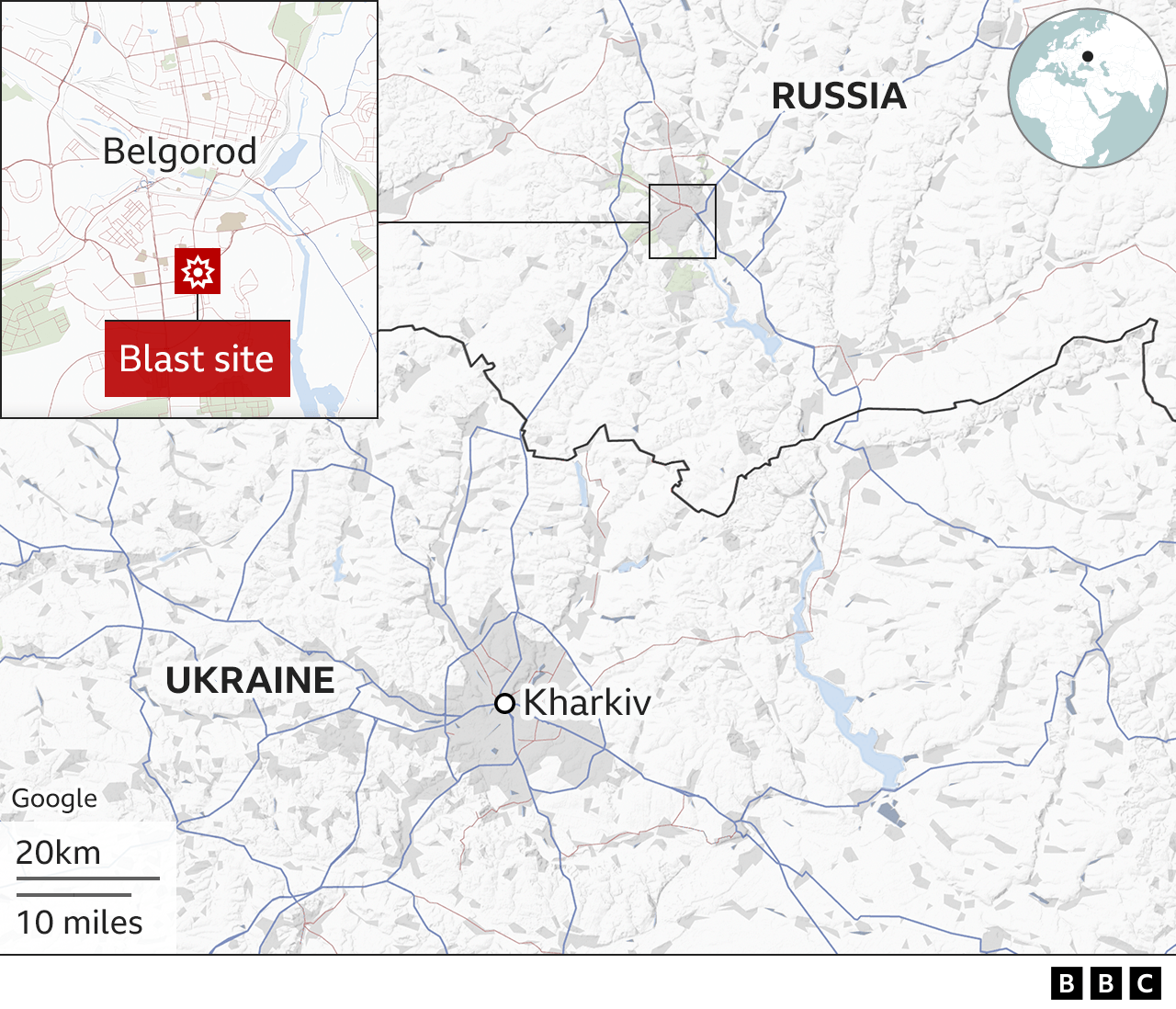 យន្តហោះចម្បាំងរុស្ស៊ី Sukhoi-34 បានទម្លាក់គ្រាប់បែកដោយចៃដន្យនៅទីក្រុង Belgorod របស់រុស្ស៊ីខ្លួនឯង ដែលមានចម្ងាយប្រហែល ៤០ គីឡូម៉ែត្រ ពីព្រំដែនជាមួយប្រទេសអ៊ុយក្រែន។ គ្រាប់បែកនេះបានបន្សល់ទុកនូវរណ្ដៅដីទំហំ ២០ ម៉ែត្រ ហើយបណ្តាលឱ្យមានការផ្ទុះដ៏ធំមួយ ដែលបានធ្វើឱ្យរថយន្តមួយប៉ើងទៅលើដំបូលហាងក្បែរនោះ។ អភិបាលតំបន់លោក Vyacheslav Gladkov បាននិយាយថា អាជ្ញាធរបានបញ្ជាឱ្យមានការជម្លៀសពលរដ្ឋពីប្លុកអគារកម្ពស់ ៩ជាន់ ដែលរងការខូចខាត ដើម្បីជាការប្រុងប្រយ័ត្ន។ លោកបាននិយាយថា មនុស្ស ៣នាក់បានរងរបួស ហើយអគារជាច្រើនបានរងការខូចខាត។