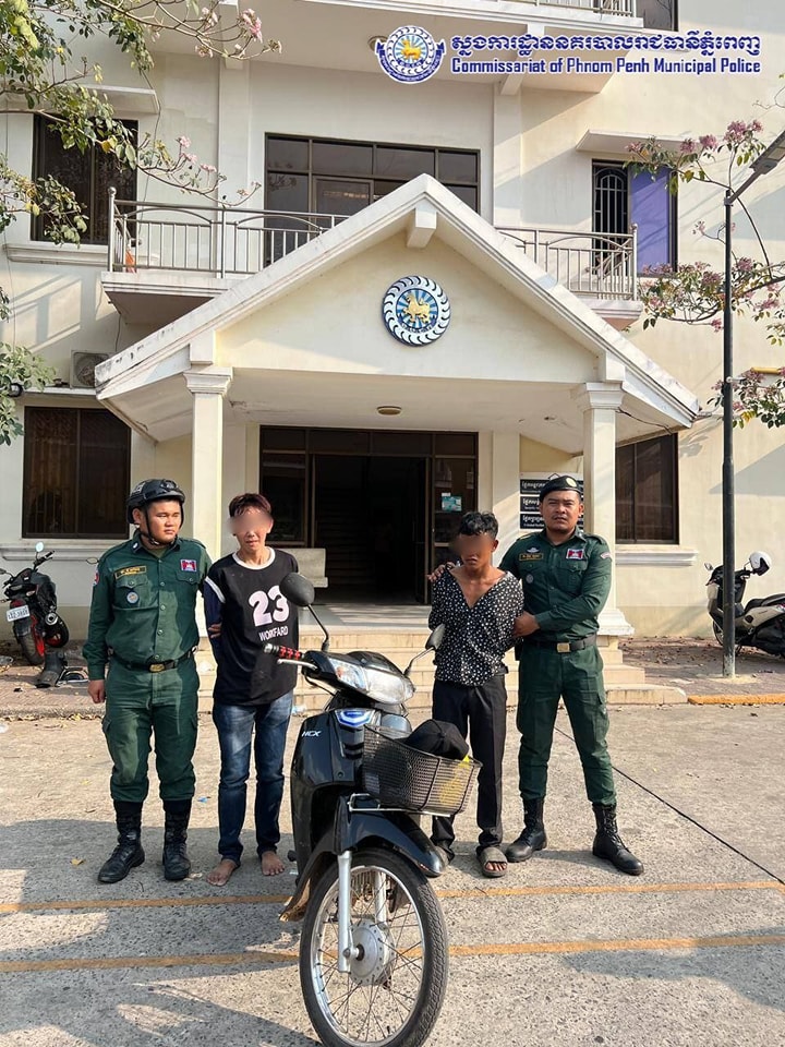 រាជធានីភ្នំពេញ៖ យោងតាមការចុះផ្សាយរបស់ ស្នងការដ្ឋាននគរបាលរាជធានីភ្នំពេញ បានឱ្យដឹងថា ជនសង្ស័យចំនួន០២នាក់ ពាក់ព័ន្ធករណីប្លន់យកម៉ូតូ ត្រូវបានកម្លាំងផ្នែកនគរបាលយុត្តិធម៌ នៃអធិការដ្ឋាននគរបាលខណ្ឌទួលគោក បានធ្វើការស្រាវជ្រាវឃាត់ខ្លួនជាបន្តបន្ទាប់។