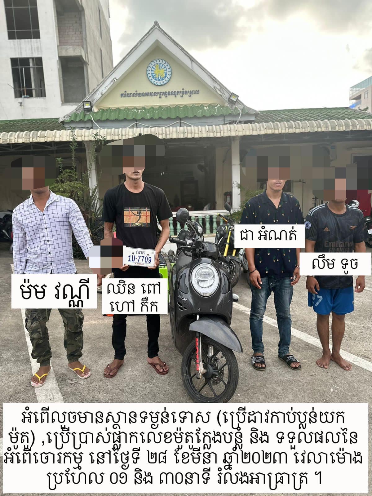 -ម៉ូតូ ០១គ្រឿង ម៉ាក Scoopy សេរីឆ្នាំ២០២២ ពណ៌ខ្មៅ ពាក់ផ្លាកលេខក្លែងបន្លំ “កំពត 1U-7709” (ផលនៃអំពើប្លន់)