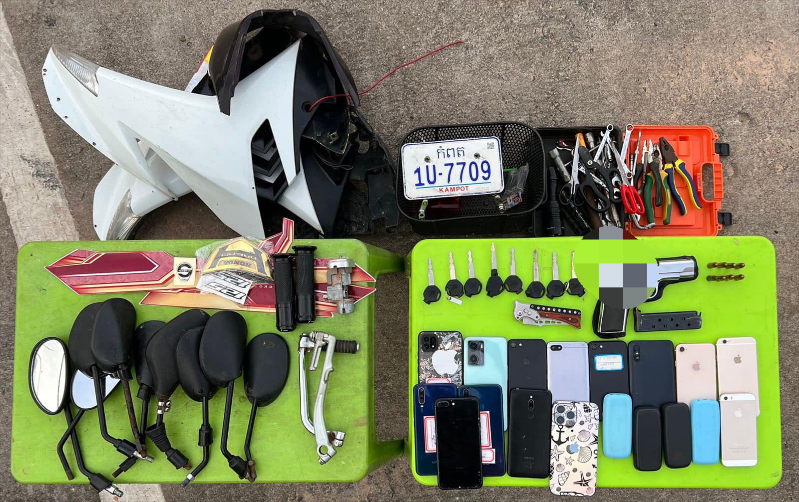 សង្ស័យ ១៣នាក់ មុខសញ្ញាប្រើដាវកាប់ប្លន់យកម៉ូតូ កាច់បំបែកសោកម៉ូតូ លួចបំបែកសោរថយន្ត ត្រូវបានស្នងការខេត្តព្រះសីហនុ បង្ក្រាបបាន