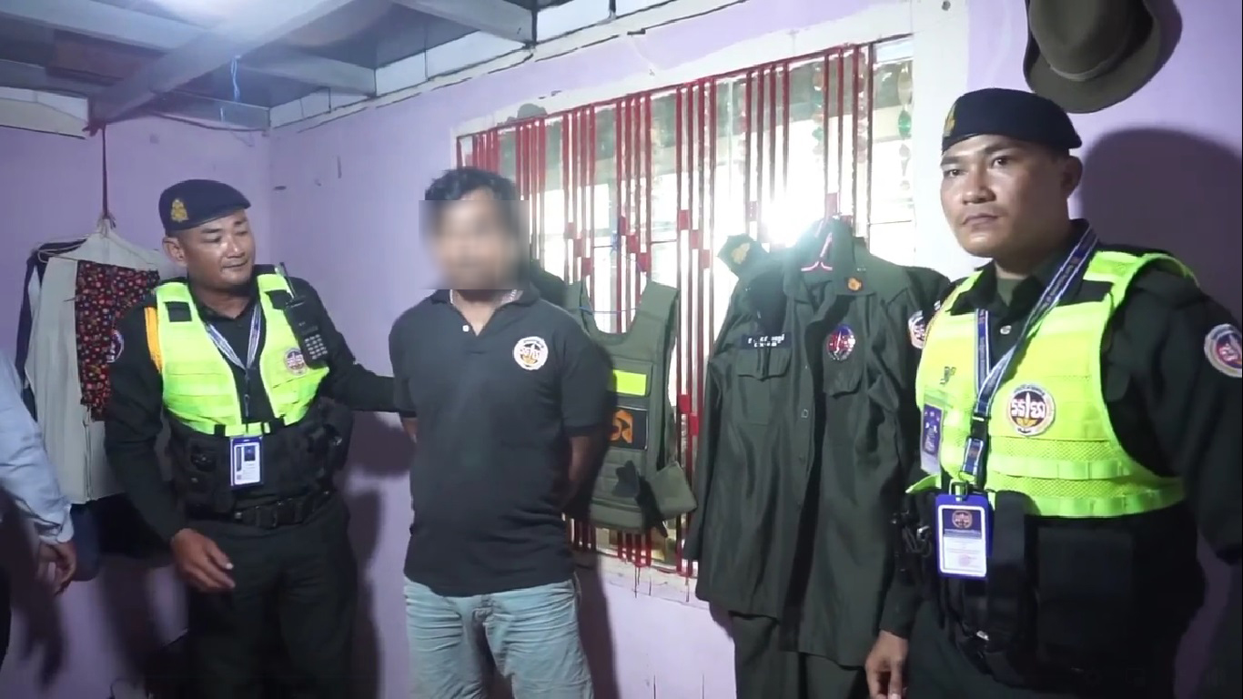 បន្ទាប់ពីបានឃើញព័ត៌មាននេះភ្លាម កម្លាំងមូលដ្ឋានអាវុធហត្ថខណ្ឌសែនសុខ សហការជាមួយ កម្លាំងជំនាញការិយាល័យប្រឆាំងបទល្មើសព្រហ្មទណ្ឌ នៃកងរាជអាវុធហត្ថរាជធានីភ្នំពេញ បានចុះធ្វើការស្រាវជ្រាវរហូតឈានទៅធ្វើការឃាត់ខ្លួនជនសង្ស័យម្នាក់ នៅវេលាម៉ោង១៤៖៣០នាទី ថ្ងៃទី០៦ ខែឧសភា ឆ្នាំ ២០២៣ ត្រង់ចំណុច ផ្ទះលេខ១៦៥ ផ្លូវលំ ក្រុម០៧ ភូមិដីថ្មី សង្កាត់គោកឃ្លាង ខណ្ឌសែនសុខ និងបានរកឃើញថា ជនសង្ស័យរូបនេះ មិនត្រឹមជាសមត្ថកិច្ចក្លែងក្លាយប៉ុណ្ណោះទេ ថែមទាំងថ្លើមធំហ៊ានក្លែងរហូតដល់ លើកស្លាក មូលដ្ឋានកងរាជអាវុធហត្ថរាជធានីភ្នំពេញ នៅផ្ទះរបស់ខ្លួនទៀតផង។