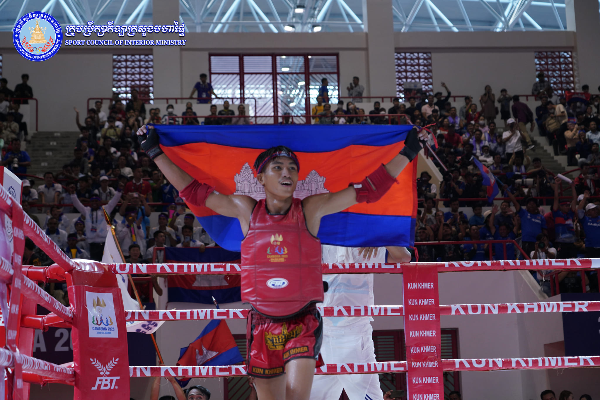 រាជធានីភ្នំពេញ៖ នៅថ្ងៃទី១០ ខែឧសភា ឆ្នាំ២០២៣ កីឡាករគុនខ្មែរ ភុន ពិសិដ្ឋ ដែលបានឈ្នះមេដាយមាស លើវិញ្ញាសា គុនខ្មែរបុរសទម្ងន់ ៤៨គីឡូក្រាម បន្ទាប់ពីយកឈ្នះកីឡាករវៀតណាម Duong Duc Bao ដោយពិន្ទុ ក្នុងព្រឹត្តិការណ៍កីឡាស៊ីហ្គេម២០២៣ ដែលប្រារព្ធឡើងនៅសាលដំរី នៃពហុកីឡដ្ឋានជាតិមរតកតេជោ ៕