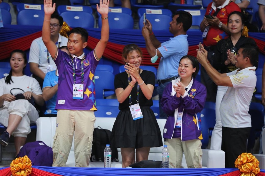 រាជធានីភ្នំពេញ៖ នាល្ងាចថ្ងៃទី១០ ខែឧសភា ឆ្នាំ២០២៣ យោងតាមការចុះផ្សាយរបស់ ក្រសួងព័ត៌មាន បានឱ្យដឹងថា ការប្រកួតកីឡាវាយសី លើវិញ្ញាសាវាយជាគូចម្រុះ (បុរស-នារី) ដែលកម្ពុជាទទួល បានមេដាយមាស ដោយបានយកឈ្នះមីយ៉ាន់ម៉ា ៣សិត ទល់ ២ នៅពហុកីឡដ្ឋានជាតិមរតកតេជោ ជោគជ័យទាំងនេះ បានធ្វើឲ្យថ្នាក់ដឹកនាំ និងអ្នកគាំទ្រសប្បាយរីករាយជាខ្លាំង ដែលឆ្លុះបញ្ចាំងឲ្យឃើញភាពរីកចម្រើនទ្វេដងរបស់កីឡាវាយសីកម្ពុជា ៕