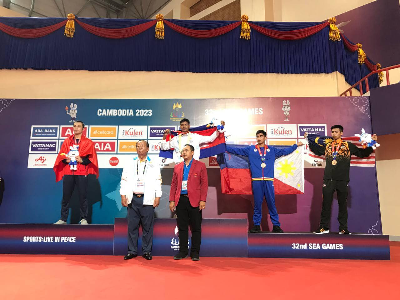 អបអរសាទរ! កីឡាករប្រដាល់គុនខ្មែរ ឡៅ ចិត្រា ឈ្នះមេដាយមាស លើវិញ្ញាសាទម្ងន់ ៦៧ គីឡូក្រាម ក្រោយយកឈ្នះកីឡាករវៀតណាម Chau Dat Nguyen នៅវគ្គផ្តាច់ព្រ័ត្រ ក្នុងព្រឹត្ដិការណ៍កីឡាស៊ីហ្គេម លើកទី៣២ ឆ្នាំ២០២៣ ដែលប្រារព្ធធ្វើឡើងនៅពហុកីឡដ្ឋានជាតិមរតកតេជោ ៕