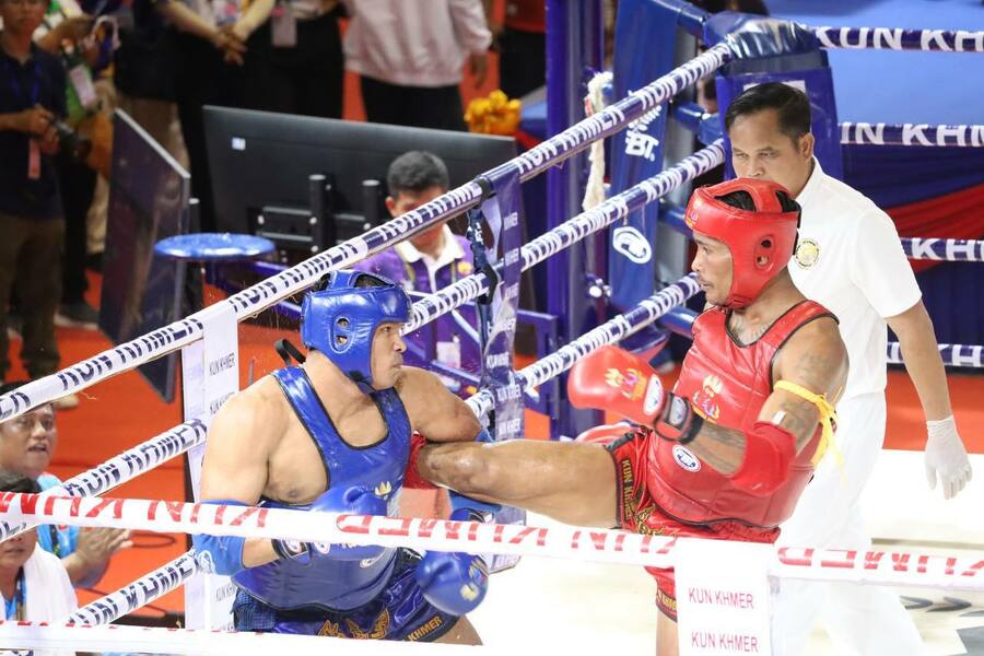 រាជធានីភ្នំពេញ៖ នារសៀលថ្ងៃទី១១ ខែឧសភា ឆ្នាំ២០២៣ កីឡាករគុនខ្មែរ រុំ សំណាង (ព្រុំ សំណាង) ដណ្ដើមបានមេដាយមាស បន្ទាប់ពីយកឈ្នះកីឡាករមីយ៉ាន់ម៉ា TUN TUN MIN ដោយពិន្ទុ ក្នុងវិញ្ញាសាប្រដាល់គុនខ្មែរ ប្រភេទទម្ងន់ ៨១គីឡូក្រាម ក្នុងជំនួបវគ្គផ្ដាច់ព្រ័ត្រ ដែលការប្រកួតផ្ដាច់ព្រ័ត្រធ្វើឡើងនៅពហុកីឡដ្ឋានជាតិមរតកតេជោ ៕
