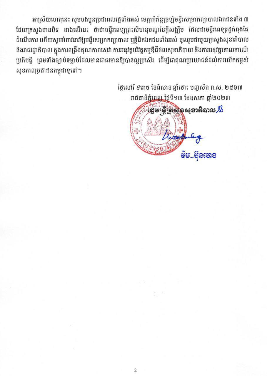 សូមអានសេចក្ដីប្រកាសព័ត៌មានរបស់ ក្រសួងសុខាភិបាល ដូចខាងក្រោម៖