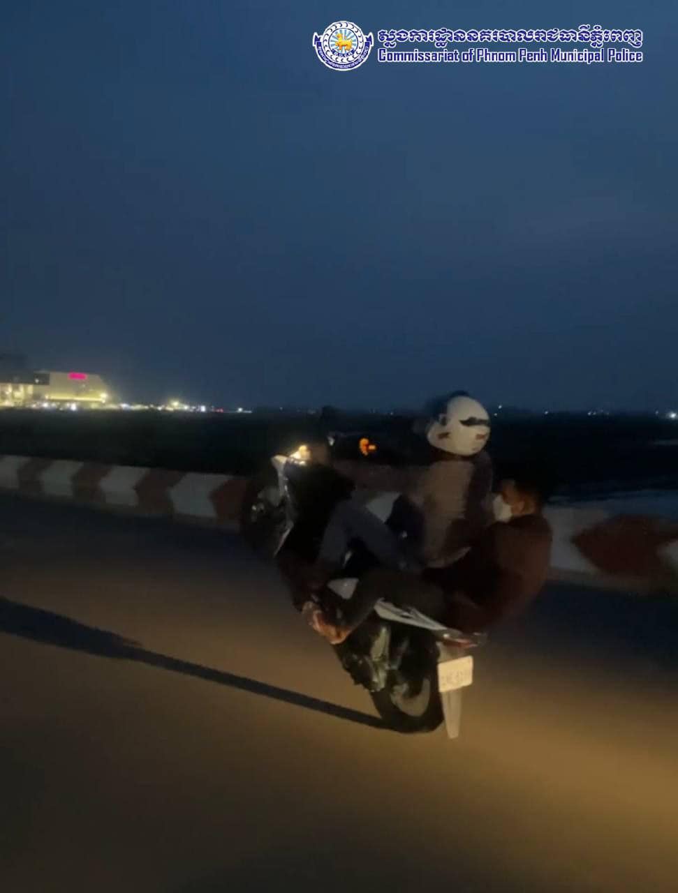 យោងតាមការបញ្ជាក់ពី ស្នងការដ្ឋាននគរបាលរាជធានីភ្នំពេញ បានឲ្យដឹងថា ក្រុមក្មេងទំនើងចំនួន១៣នាក់ ប្រើប្រាស់ម៉ូតូចំនួន០៦គ្រឿង ដែលបង្ហោះម៉ូតូតាមផ្លូវសាធារណៈ កាលពីយប់ទាបភ្លឺ ថ្ងៃទី១៣ ខែឧសភា ឆ្នាំ២០២៣ ត្រូវបានកម្លាំងនៃអធិការដ្ឋាននគរបាលខណ្ឌមានជ័យ បានធ្វើការបង្រ្កាបឃាត់ខ្លួន។