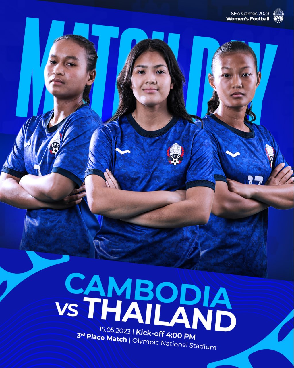 ថ្ងៃនេះ គឺជាថ្ងៃប្រកួតរបស់ក្រុមជម្រើសជាតិនារីកម្ពុជា ទល់នឹងក្រុមជម្រើសជាតិនារីថៃ ដើម្បីយកចំណាត់ថ្នាក់លេខ៣ លើវិញ្ញសាបាល់ទាត់នារី ក្នុងព្រឹត្តិការណ៍កីឡាសុីហ្គេម ២០២៣។ ការប្រកួតរវាងកម្ពុជា vs ថៃ នឹងប្រព្រឹត្តទៅនៅវេលាម៉ោង ៤:០០ រសៀល ថ្ងៃទី១៥ ខែឧសភា ២០២៣ នៅពហុកីឡដ្ឋានជាតិ។ “ទាំងអស់គ្នា ដើម្បីកម្ពុជា” ៕