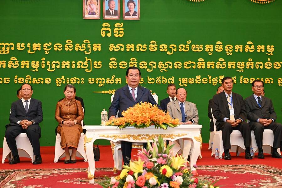 ក្នុងពិធីប្រគល់សញ្ញាបត្រ ជូននិស្សិតបញ្ចប់ការសិក្សាផ្នែកកសិកម្ម ជាង៣ ០០០ នាក់ នាព្រឹកថ្ងៃទី១៥ ខែឧសភា ឆ្នាំ២០២៣ នៃសាកលវិទ្យាល័យភូមិន្ទកសិកម្ម នៅមជ្ឈមណ្ឌលសន្និបាត និងពិព័រណ៍កោះពេជ្រ សម្ដេចតេជោ ហ៊ុន សែន បានថ្លែងថា មកដល់ថ្ងៃនេះ នៅសល់តែរយៈពេលពីរថ្ងៃទៀតតែប៉ុណ្ណោះ ដែលបញ្ចប់បុណ្យរបស់ប្រជាជាតិខ្មែរទាំងមូល ដែលកំពុងធ្វើជាម្ចាស់ផ្ទះនៃការប្រកួតកីឡាស៊ីហ្គេមដ៏ជោគជ័យ។ សម្ដេចតេជោថ្លែងបញ្ជាក់ថា៖ «ការប្រកួតកីឡាស៊ីហ្គេមនេះ យើងមិនមែនគិតបញ្ហាឈ្នះ ចាញ់ ជ្រុលហួសហេតុពេកនោះទេ ប៉ុន្តែអ្វីដែលយើងគិតធំបំផុត គឺគិតទៅដល់ការធ្វើជាម្ចាស់ផ្ទះ ដែលផ្ដល់ឱ្យភ្ញៀវមកកាន់ប្រទេសរបស់យើង ទទួលបាននូវសេចក្ដីសុខ និងការស្វាគមន៍ពីសំណាក់ប្រជាពលរដ្ឋរបស់យើង»។