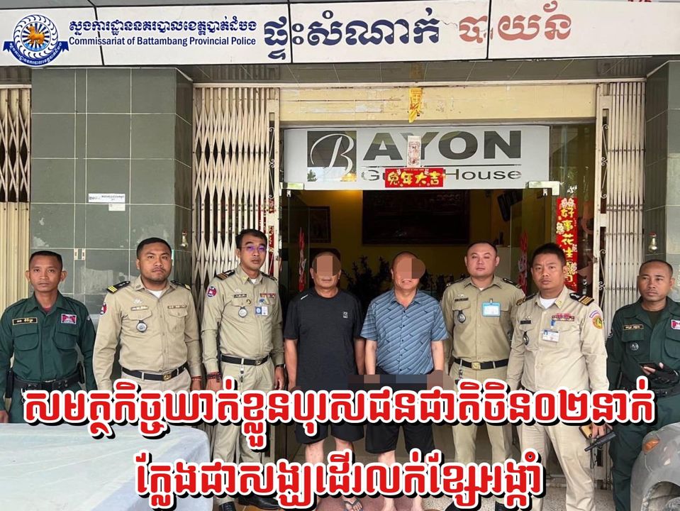 ជនជាតិចិន ២នាក់ ក្លែងខ្លួនជាសង្ឃដើរលក់ខ្សែអង្កាំចូលដល់ក្នុងផ្ទះប្រជាពលរដ្ឋដោយមិនញញើតក្រែង ត្រូវបានសមត្ថកិច្ចឃាត់ខ្លួននៅក្រុងបាត់ដំបង