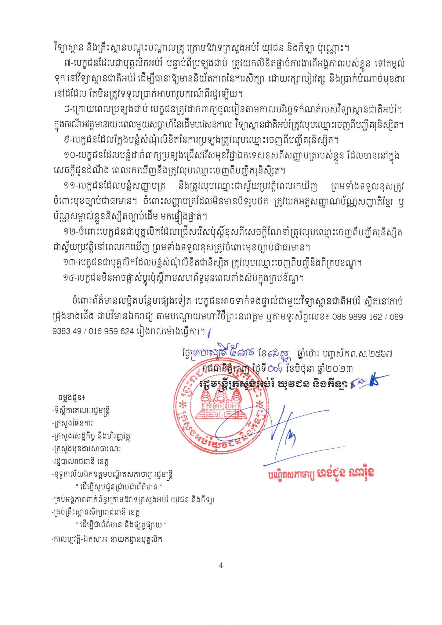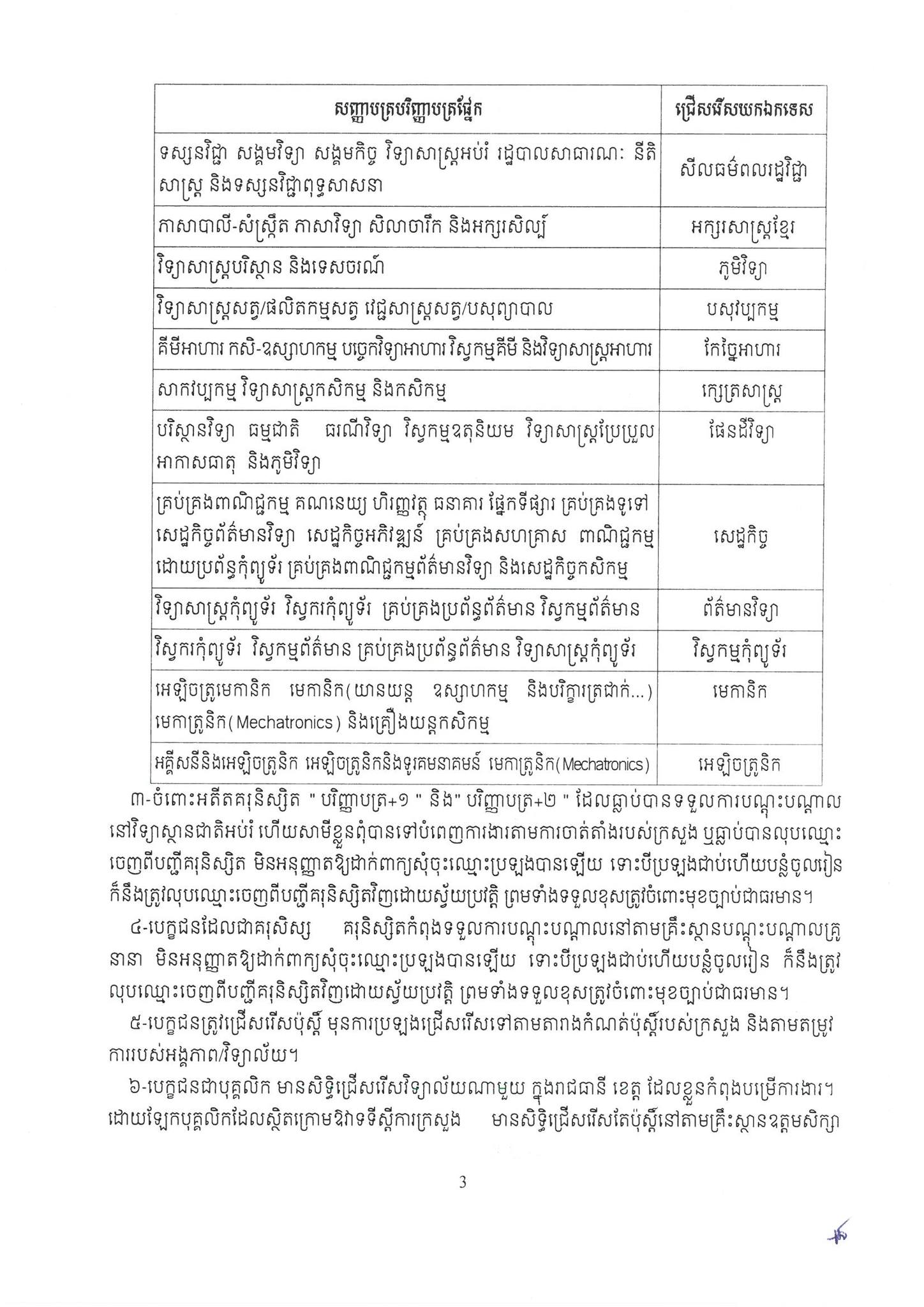សូមអានសេចក្ដីជូនដំណឹងរបស់ ក្រសួងអប់រំ ដូចខាងក្រោម៖