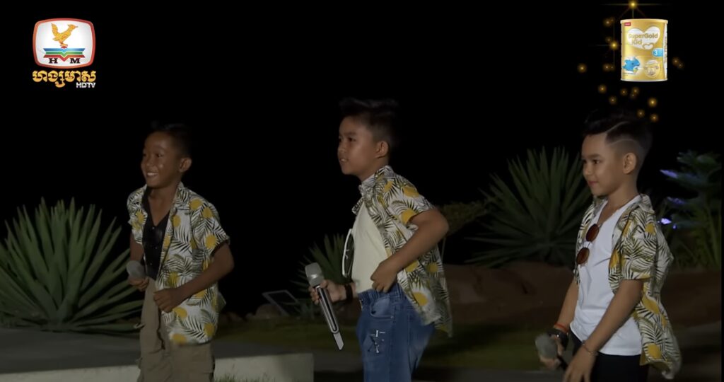 ក្រុមចុងក្រោយកាលពីយប់មិញនេះ មានកុមារាគួរឲ្យស្រលាញ់3នាក់ដែលបានបកស្រាយបទចម្រៀងព្រមទាំងការវិការយ៉ាងគួរឲ្យអស់សំណើចរហូតគណកម្មការទាំង3សើចទប់ខ្លួនមិនជាប់តែម្តង។