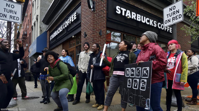 យ៉ាងណាក្តី ពេលនោះក្រុមបុគ្គលិកនៅក្នុងកាហ្វេ Starbucks មិនបានអនុញ្ញាតឲ្យបុរសជនជាតិស្បែកខ្មៅនោះទៅប្រើប្រាស់បន្ទប់ទឹកឡើយ និងបានប្រាប់ឲ្យពួកគាត់ទាំង ២នាក់ចាកចេញពីក្នុងហាងកាហ្វេទៀតផង តែពួកគាត់មិនព្រមដើរចេញនោះទេ។ នៅក្នុងស្ថានភាពចម្រូងចម្រាសនោះ បុគ្គលិកក្នុងហាងកាហ្វេក៏បានប្តឹងប៉ូលិសឲ្យមកធ្វើអន្តរាគមន៍ ហើយសកម្មភាពចាប់បុរសជនជាតិស្បែកខ្មៅទាំង ២នាក់នោះត្រូវបានគេយកទៅបង្ហោះជាសាធារណៈលើបណ្តាញអ៊ីនធឺណិត ខណៈមានពលរដ្ឋជាច្រើនបានរិះគន់យ៉ាងខ្លាំងទៅលើក្រុមហ៊ុន Starbucks ថា មាននិន្នាការរើសអើងជាតិសាសន៍។