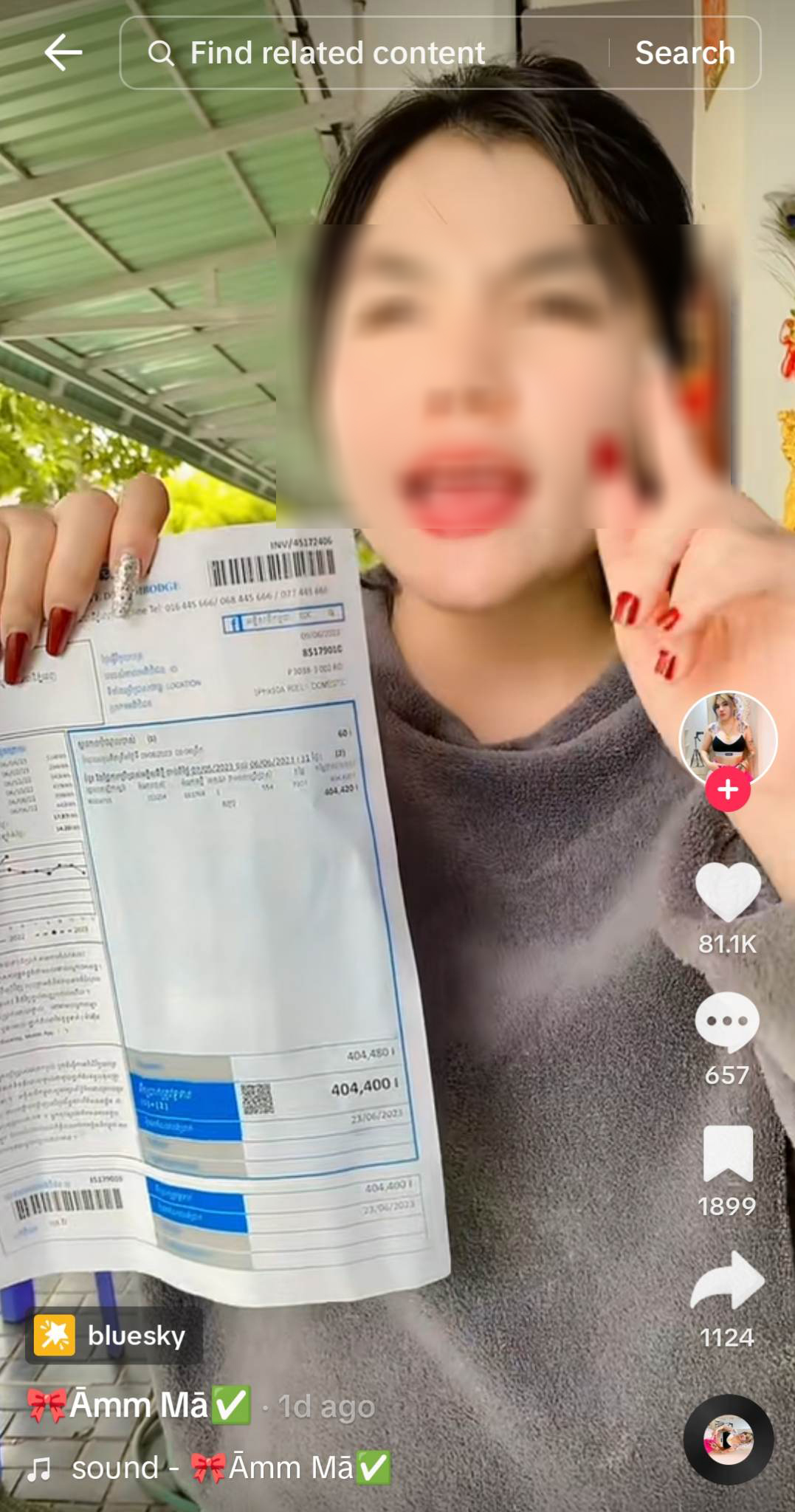 រាជធានីភ្នំពេញ៖ នៅថ្ងៃទី១៦ ខែមិថុនា ឆ្នាំ២០២៣ យោងតាមការចុះផ្សាយរបស់ អគ្គិសនីកម្ពុជា បានចេញសេចក្ដីបំភ្លឺ ចំពោះម្ចាស់គណនី Tik Tok ឈ្មោះ Āmm Mā បានលើកឡើងថា «បងប្អូនភ្លើងខែនេះខ្ញុំអត់បង់ទេ ខ្ញុំអត់ដែលនៅផ្ទះទេ តែភ្លើងរបស់ខ្ញុំអស់៤០៤,៤០០ រៀល ខ្ញុំអត់មាត់ទេ ចឹងខ្ញុំអត់មានលុយបង់ទេ ទឹកភ្លើងស៊ីដល់ក ខ្ញុំអត់បង់ទេ អាណិតប្រជាជនផងជិតលៀនអណ្តាតហើយសភ្នែកទទេស្អាត»។