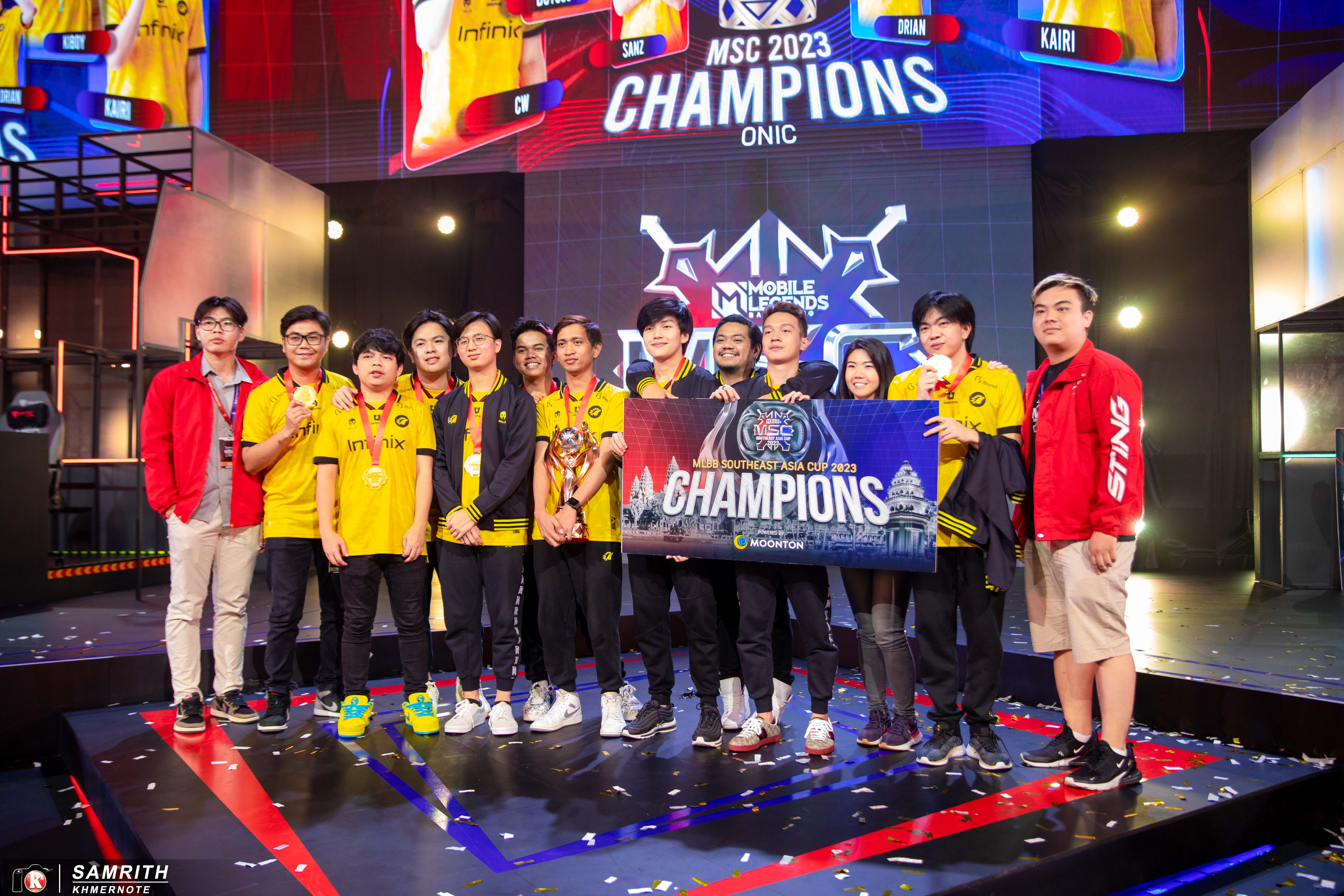 ក្រោយពីការប្រកួតយ៉ាងស្វិតស្វាញអស់រយៈពេលជាងមួយសប្ដាហ៍មក ក្រុម ONIC ESPORTS ដែលមកពីប្រទេសឥណ្ឌូនេស៊ីបានក្លាយជាជើងឯកនៃការប្រកួត ព្រឹត្តិការណ៍ Mobile legend Southeast Asian Cup 2023 (MSC) ដែលមានប្រាក់រង្វាន់សរុប USD 300.000 (សាមសិបមុឺនដុល្លារអាមេរិក)។ ព្រឹត្តិការណ៍នេះជាព្រឹត្តិការណ៍ដ៏ធំប្រចាំឆ្នាំ របស់ Mobile Legends: Bang Bang ដែលប្រព្រឹត្តនៅកម្ពុជាជាលើកដំបូងដែលមានក្រុមចូលរួមប្រកួតមកពីប្រទេសជាច្រើនពីក្នុង និងក្រៅតំបន់អាស៊ីអាគ្នេយ៍។