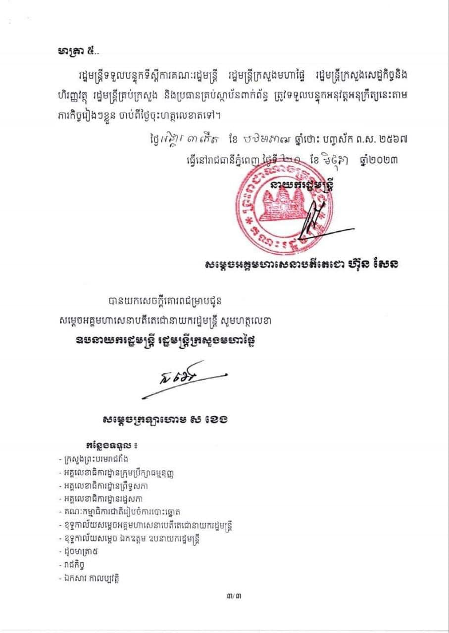 រាជរដ្ឋាភិបាល ចេញអនុក្រឹត្យនេះមានគោលបំណងកំណត់អំពីការបន្ដសុពលភាពអត្ដសញ្ញាណប័ណ្ណសញ្ជាតិខ្មែរគំរូថ្មី ដែលបានអស់សុពលភាពប្រើប្រាស់ ក្នុងឆ្នាំ២០២២ និងឆ្នាំ២០២៣ សម្រាប់បម្រើឱ្យការបោះឆ្នោតជ្រើសតាំងតំណាងរាស្ដ្រ នីតិកាលទី៧ ហើយមានវិសាលភាព អនុវត្តរហូតដល់ថ្ងៃប្រកាសលទ្ធផលផ្លូវការ នៃការបោះឆ្នោតជ្រើសតាំងតំណាងរាស្ដ្រ នីតិកាលទី៧៕ ខាងក្រោមនេះ ជាអនុក្រឹត្យរបស់សម្តេចតេជោ ហ៊ុន សែន៖