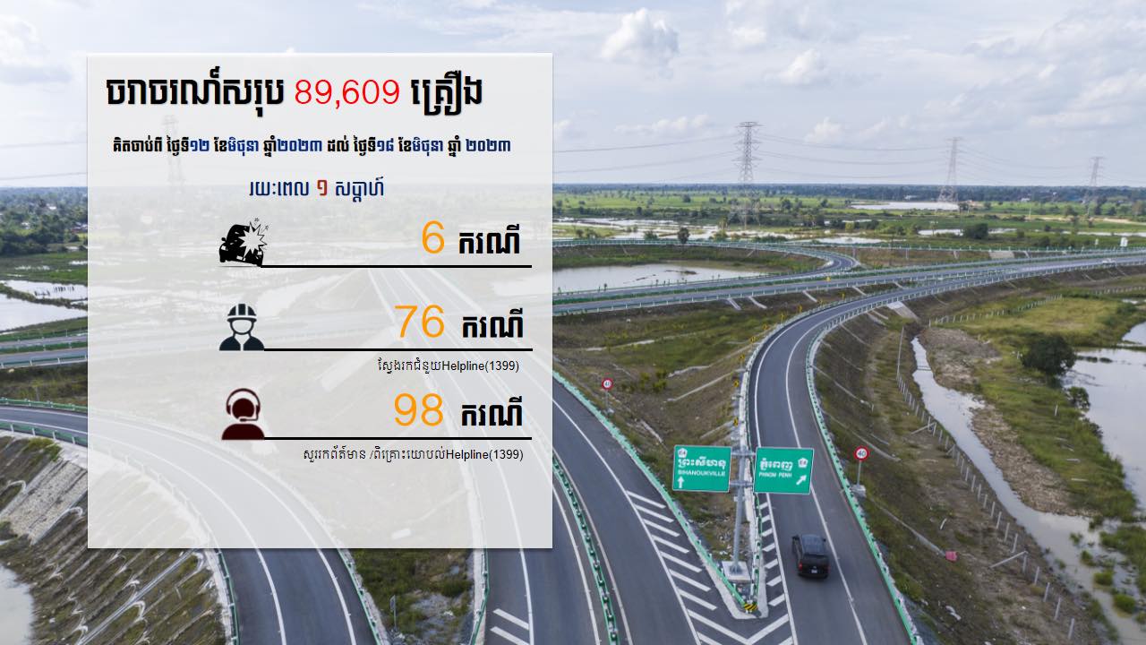 រយៈពេល១សប្ដាហ៍ យានយន្តដែលធ្វើដំណើរលើផ្លូវល្បឿនលឿនសរុបចំនួន ៨៩ ៦០៩ គ្រឿង ក្នុងនោះបញ្ហាគ្រោះថ្នាក់ចរាចរណ៍មានចំនួន ៦ករណី