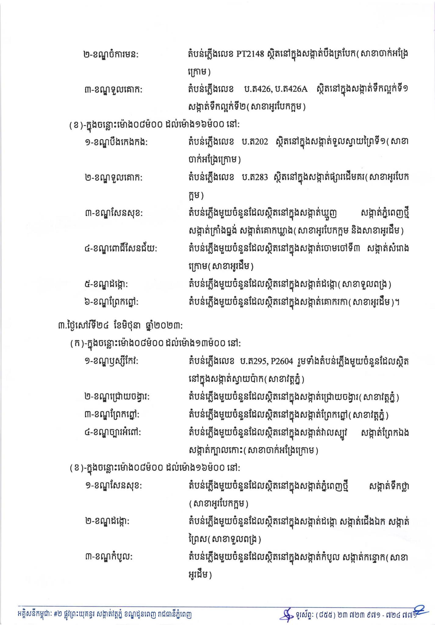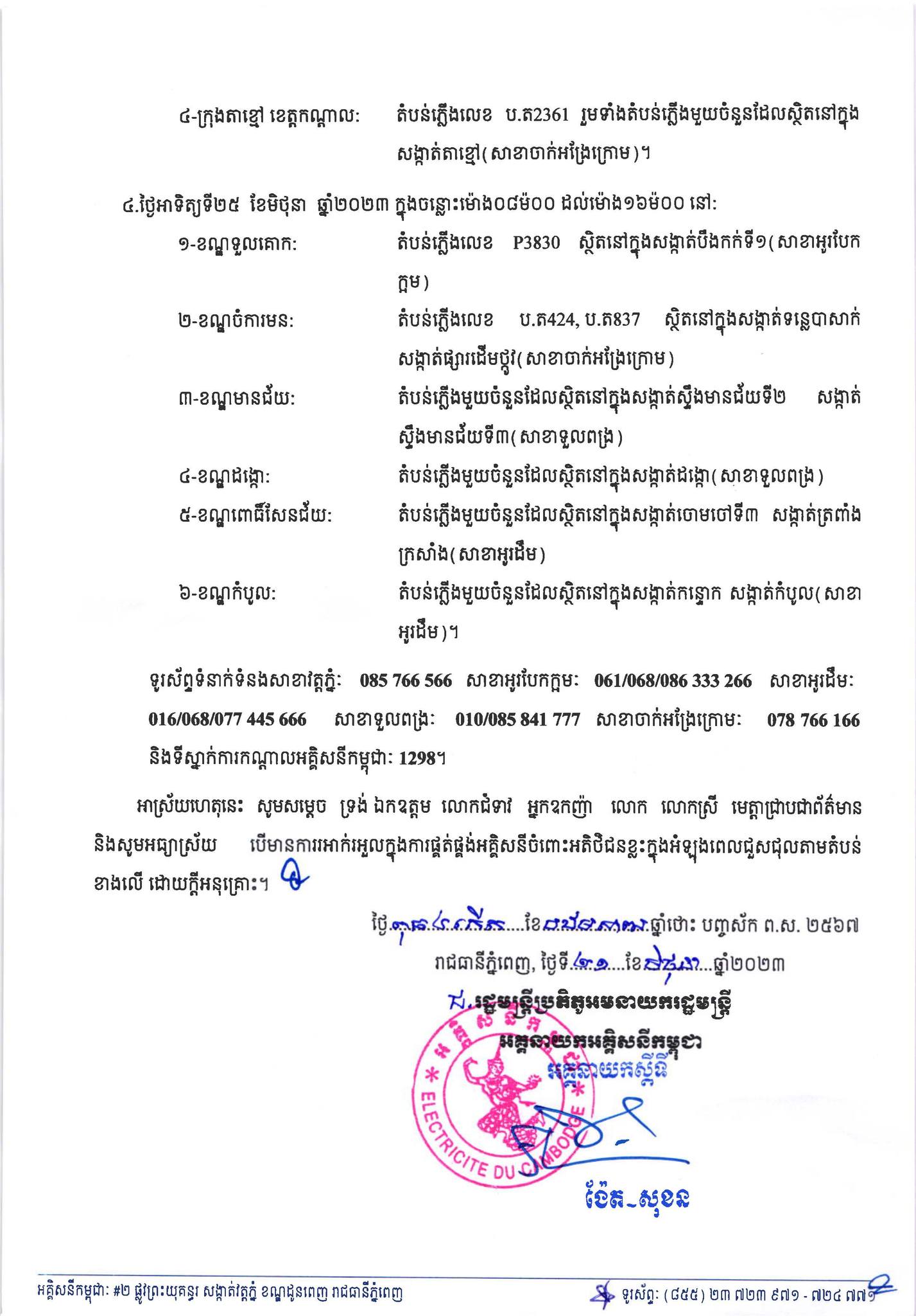 សាកថ្មឱ្យពេញៗ! ចាប់ពីថ្ងៃនេះ ដល់ថ្ងៃទី២៥ ខែមិថុនា អគ្គិសនីកម្ពុជា នឹងផ្អាកចរន្តអគ្គិសនីនៅតំបន់មួយចំនួន តាមបណ្ដាខណ្ឌទាំងនេះ