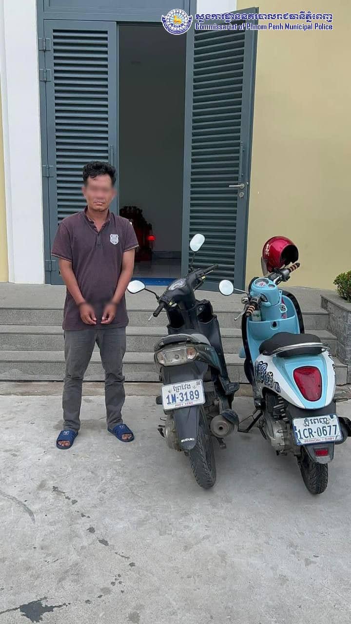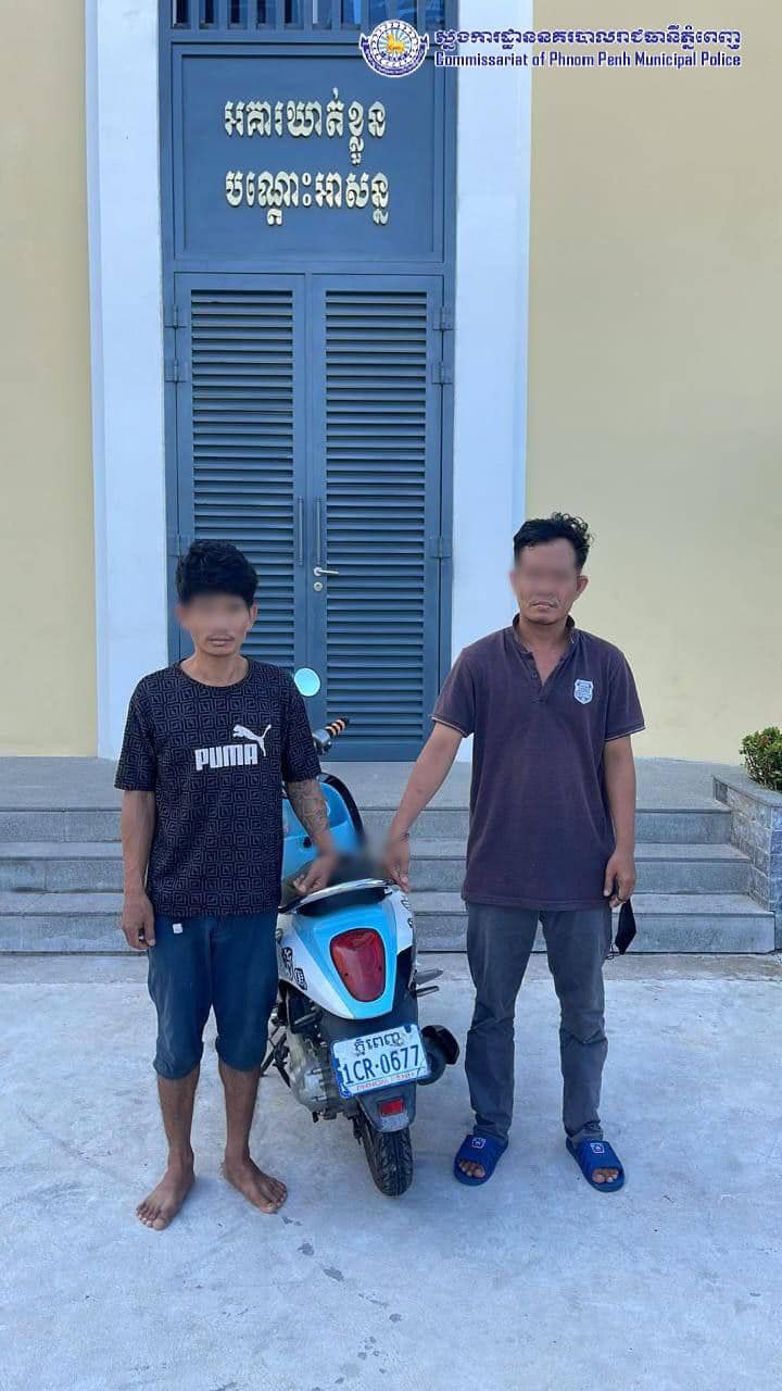 ជនសង្ស័យចំនួន ២នាក់ ពាក់ព័ន្ធករណីលួចម៉ូតូ នៅចំណុចមុខហាងកាហ្វេមួយកន្លែង ក្នុងសង្កាត់ភ្នំពេញថ្មី ត្រូវបានកម្លាំងសមត្ថកិច្ចឃាត់ខ្លួន