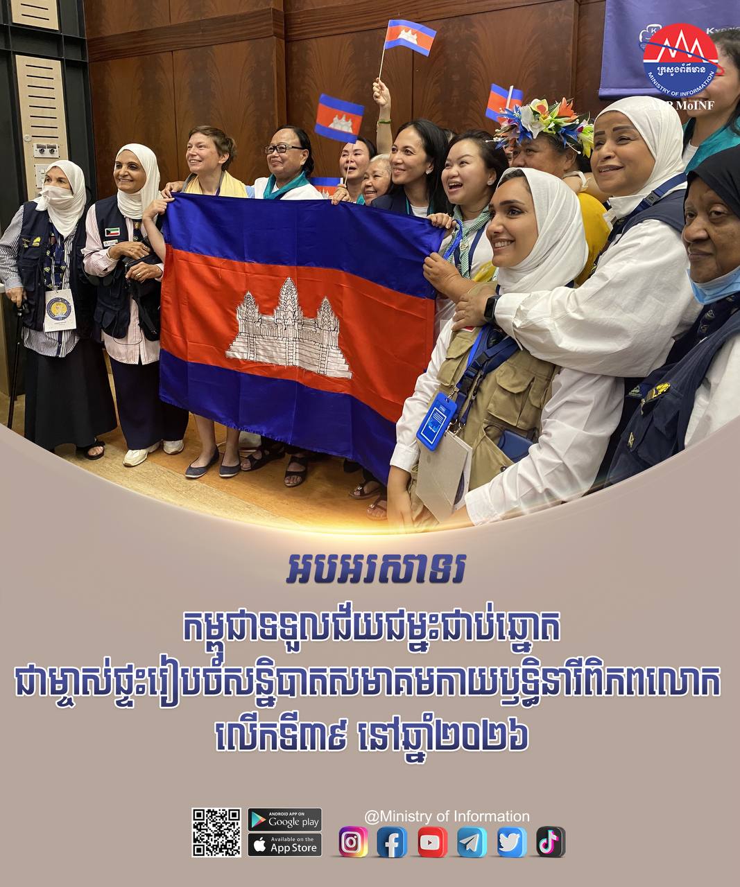 អបអរសាទរ! កម្ពុជាទទួលជ័យជម្នះជាប់ឆ្នោត ជាម្ចាស់ផ្ទះរៀបចំសន្និបាតសមាគមកាយប្ញទ្ធិនារីពិភពលោក លើកទី៣៩ នៅឆ្នាំ២០២៦