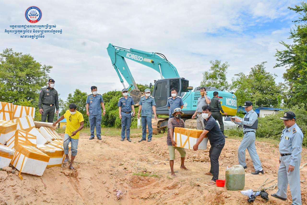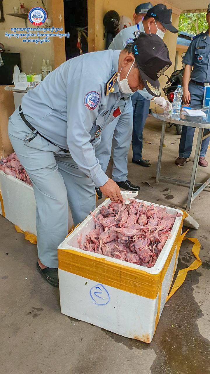 មន្ត្រីជំនាញខេត្តព្រៃវែង ចុះប្រមូលសាច់ក្រួចបង្កកប្រមាណ ២តោន យកទៅដុតកម្ទេចចោល